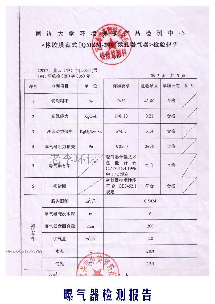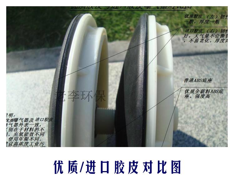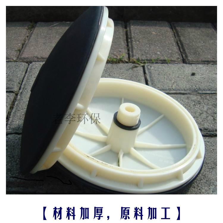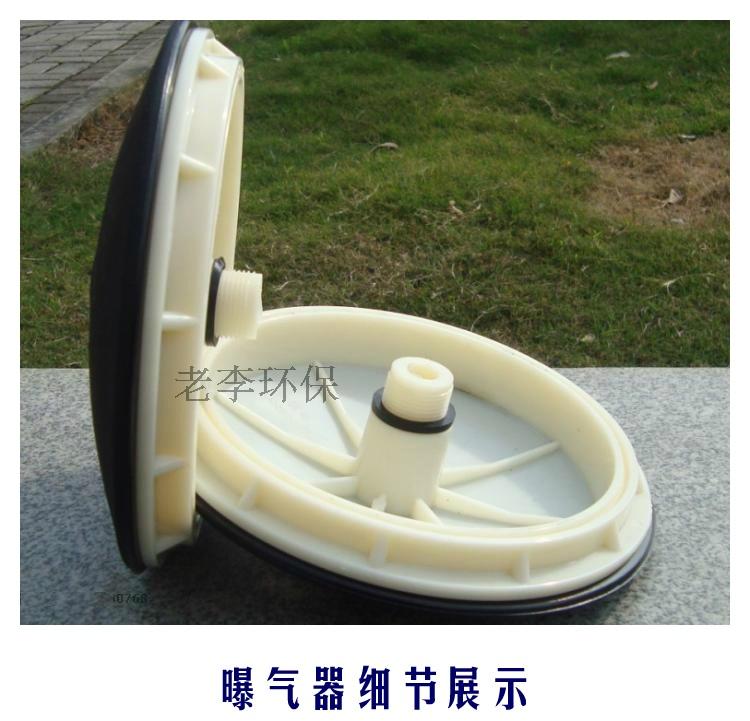 盘式膜片微孔曝气器 一、优越性 膜片式微孔曝气器是80年代研制的新型曝气装置,该装置曝气气泡小、气液面积大,气泡扩散均匀,不会产生孔眼堵塞,耐腐蚀性强。但通过多年的动行出现了一些难以解冰的不足。如:膜片脱落、膜片撕裂、膜片打不开、污泥进入支气管等向题。 |