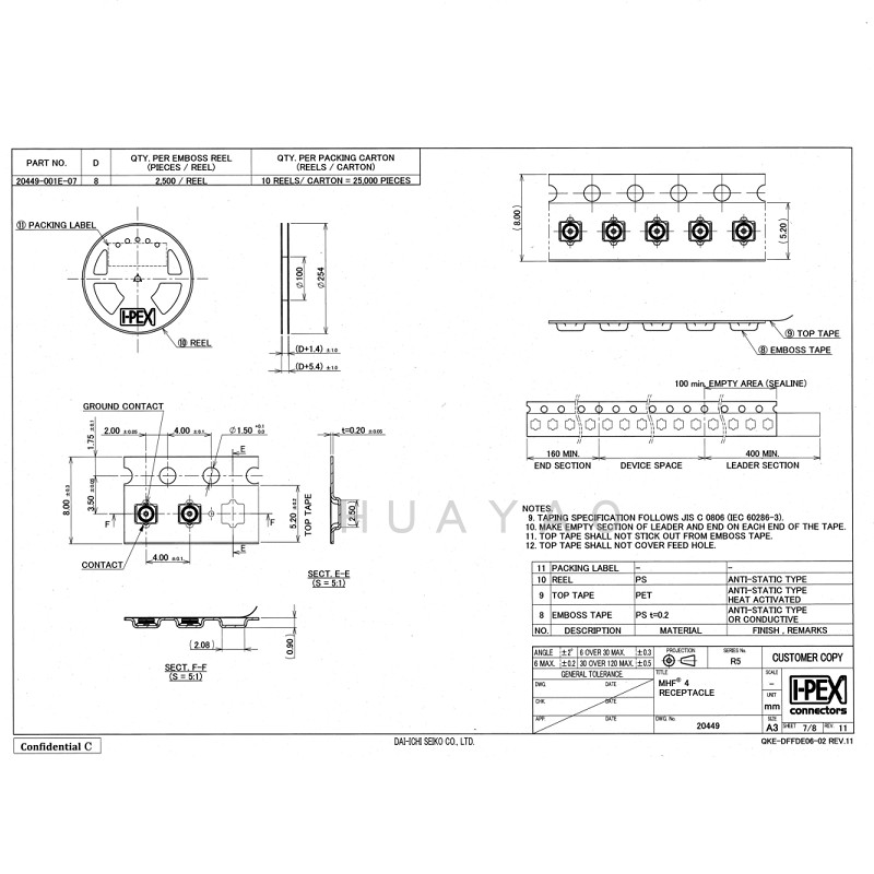 ipex20279一代/IPEX20369三代/4代 IPEX座子20449 板端天线座子