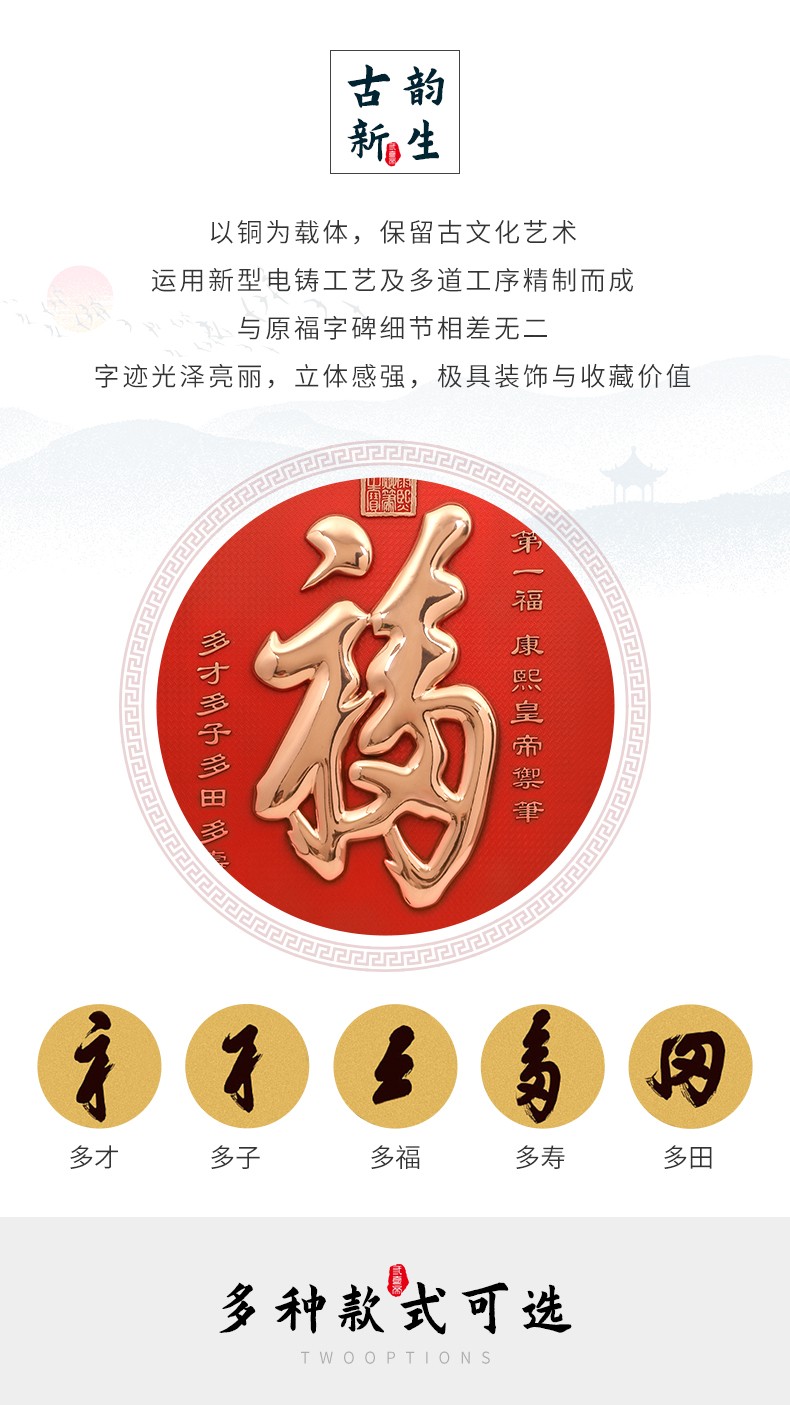 | Цветовые варианты | 600мм x 600мм (красный фон), 600мм x 600мм (чёрный фон), 530мм x 830мм, 730мм x 900мм (красный фон), 730мм x 900мм (чёрный фон), 1040мм x 1380мм (красный фон), 1040мм x 1380мм (чёрный фон), 1890мм x 2280мм (красный фон), 1890мм x 2280мм (чёрный фон), 800мм x 1100мм (без уголков), 800мм x 1100мм (с уголками), иероглиф Шоу 730мм x 900мм (красный фон), 650мм x 790мм (красный фон), 650мм x 790мм (чёрный фон), 751мм x 910мм (красный фон), 751мм x 910мм (чёрный фон), 1090мм x 1290мм (красный фон), 1090мм x 1290мм (чёрный фон), 1760мм x 2110мм (красный фон), 1760мм x 2110мм (чёрный фон), Лунфу 540мм x 610мм (красный фон) |