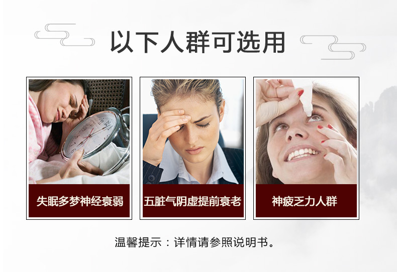 | Симптомы | Сухой и твердый стул, боли в пояснице и коленях, жар и раздражение в кистях рук и стопах, одышка и сухость во рту, сухость во рту и горле, затуманенное зрение, сухой кашель, усталость, дефицит ци и Инь, умственная и физическая усталость |