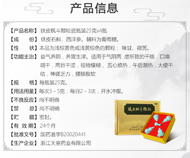 | Название продукта | 25 г*4 бутылки x 1 коробка; 25 г*4 бутылки x 2 коробки; 25 г*4 бутылки x 1 коробка + напиток ЛиЦзуань из дендробиума 245 мл*1 банка; 25 г*4 бутылки x 1 коробка + напиток ЛиЦзуань из дендробиума 245 мл*6 банок; 25 г*4 бутылки x 1 коробка + леденцы ЛиЦзуань из дендробиума, 144 таблетки (подарочная упаковка) |