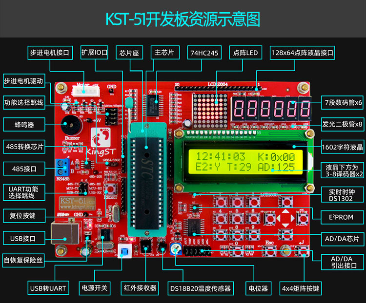 Плата разработки микроконтроллера KST-51 Учебный набор с поэтапным обучением микроконтроллеру 51 Официальный магазин Джиншатань