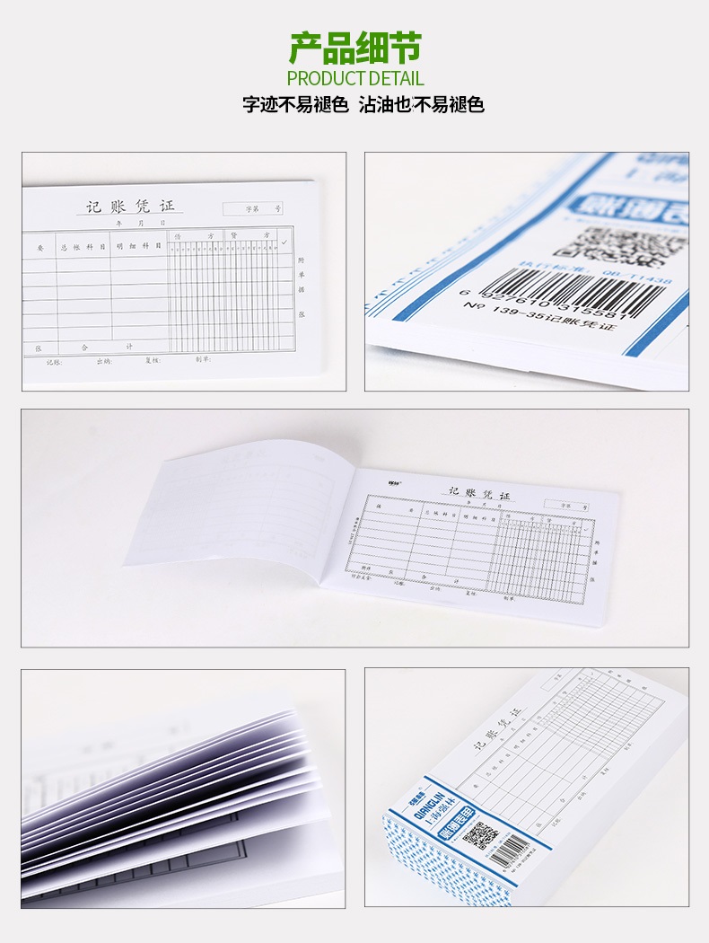 Учетный ваучер Qianglin 139-35 черный, размер 35, 206x106 мм, цвета черный, синий, красный, зеленый