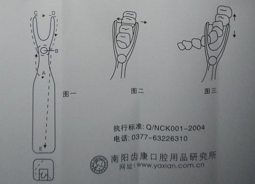 1、将牙线从A点拉出约15厘米,绕B处一周,拉紧经C点到D点,再饶B处两周,经E点凹槽到底部刀片处将多余的牙线切除。如图一: