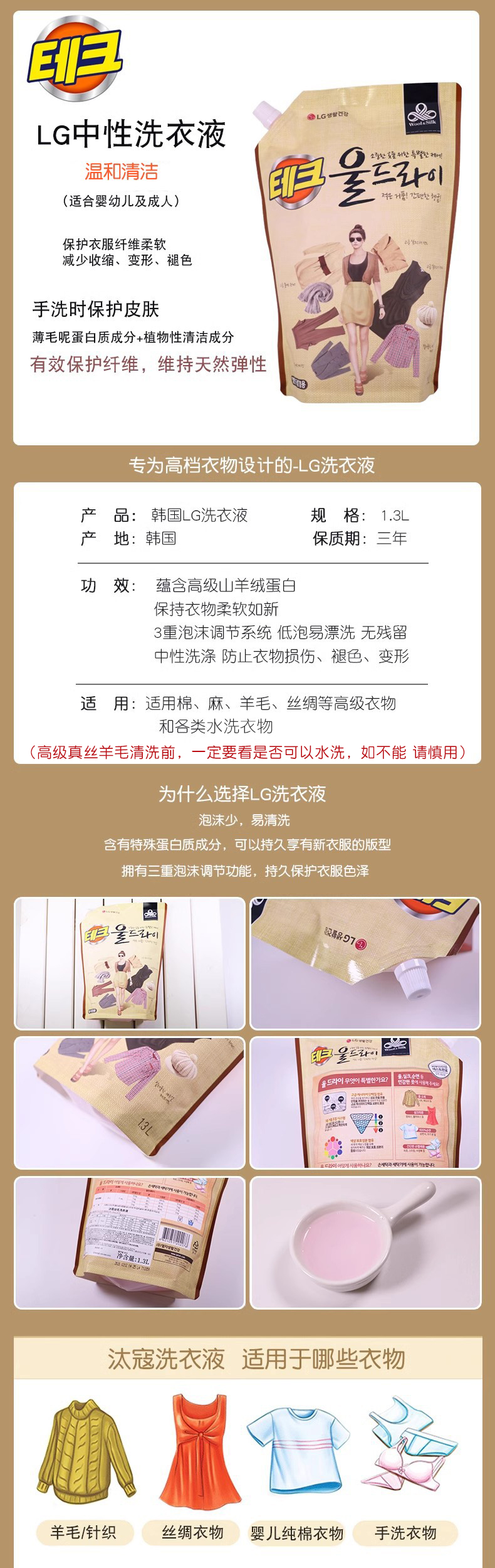 Импортный из Кореи стиральный жидкий порошок LG TaeKoo мягкая очистка, легкое полоскание для шелка и шерсти, домашняя упаковка с низкой пеной