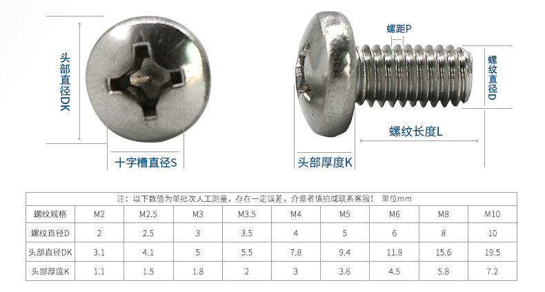 Стандартные винты с круглой головкой из нержавеющей стали 304 M2*3/4/5/6/8/10/12/14/16/18/20/22/25