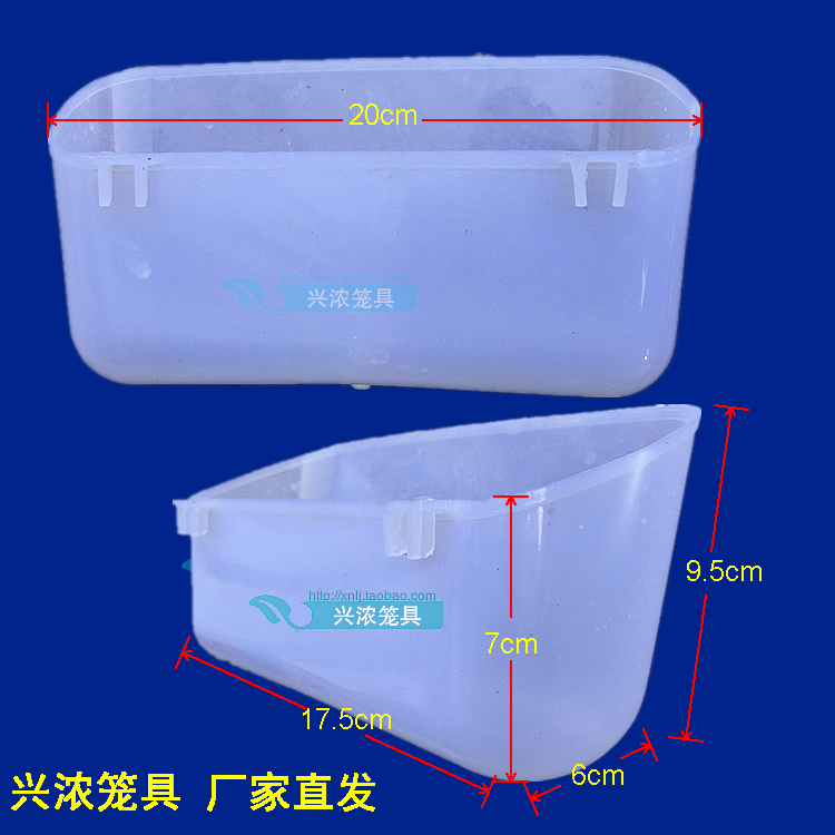 一、双挂钩,方便悬挂,挂上不掉,挂在两个笼位中间,可以供两对鸽子食用!也可当做水盒!