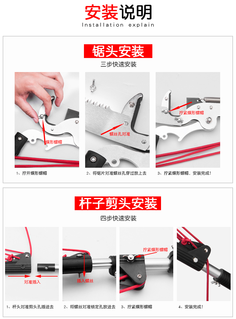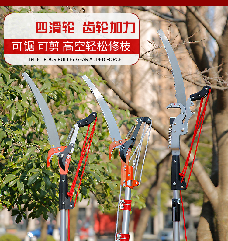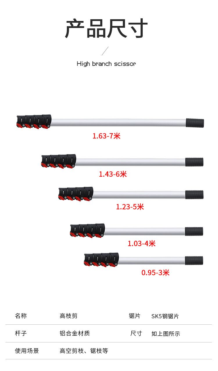 ★采用伸缩型铝合金管,可根据树木高低随意调节,铝合金管重量轻,操作轻便 。