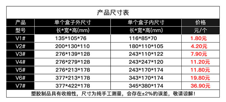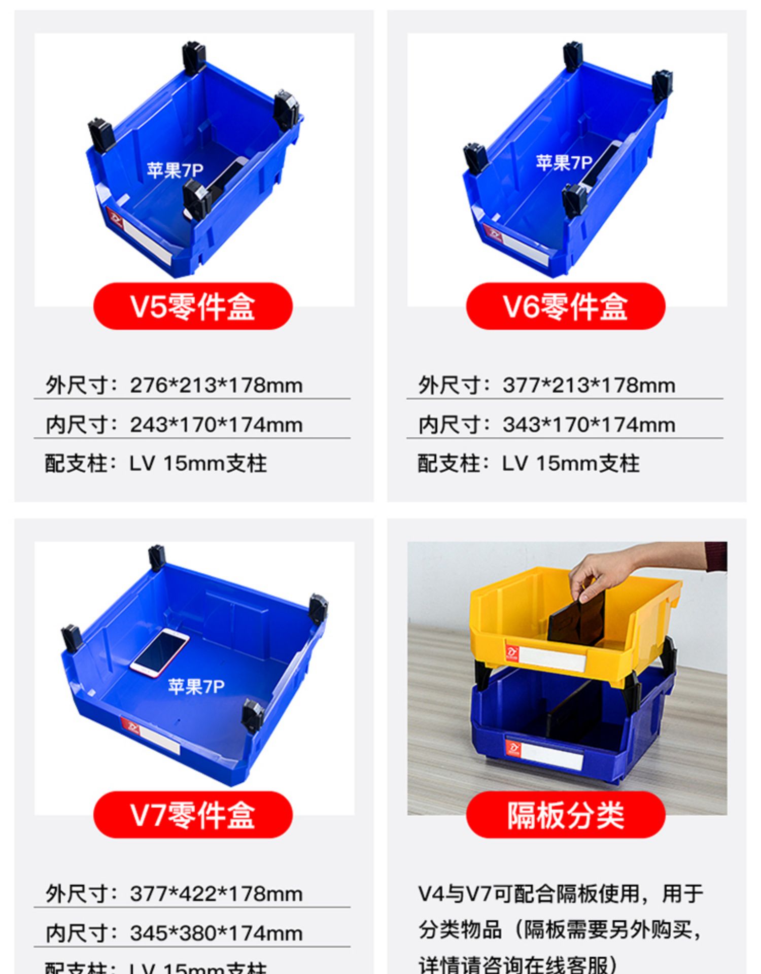 | Цветовые варианты | V1(синий)135*105*76мм, V1(красный)135*105*76мм, V1(жёлтый)135*105*76мм, V1(коричневый)135*105*76мм, V1(белый)135*105*76мм, V2(синий)200*130*110мм, V2(красный)200*130*110мм, V2(жёлтый)200*130*110мм, V2(коричневый)200*130*110мм, V2(белый)200*130*110мм, V3(синий)276*139*128мм, V3(красный)276*139*128мм, V3(жёлтый)276*139*128мм, V3(коричневый)276*139*128мм, V4(синий)276*279*128мм, V4(красный)276*279*128мм, V4(жёлтый)276*279*128мм, V4(коричневый)276*279*128мм, V4(белый)276*279*128мм, V5(синий)276*213*178мм, V5(красный)276*213*178мм, V5(жёлтый)276*213*178мм, V5(коричневый)276*213*178мм, V5(белый)276*213*178мм, V6(синий)377*213*178мм — доступны четыре цвета, V6(красный)377*213*178мм, V6(жёлтый)377*213*178мм, V6(коричневый)377*213*178мм, V6(белый)377*213*178мм, V7(синий)377*422*178мм — доступны четыре цвета, V7(красный)377*422*178мм — доступны четыре цвета, V7(жёлтый)377*422*178мм, V7(коричневый)377*422*178мм — доступны четыре цвета, V7(белый)377*422*178мм |