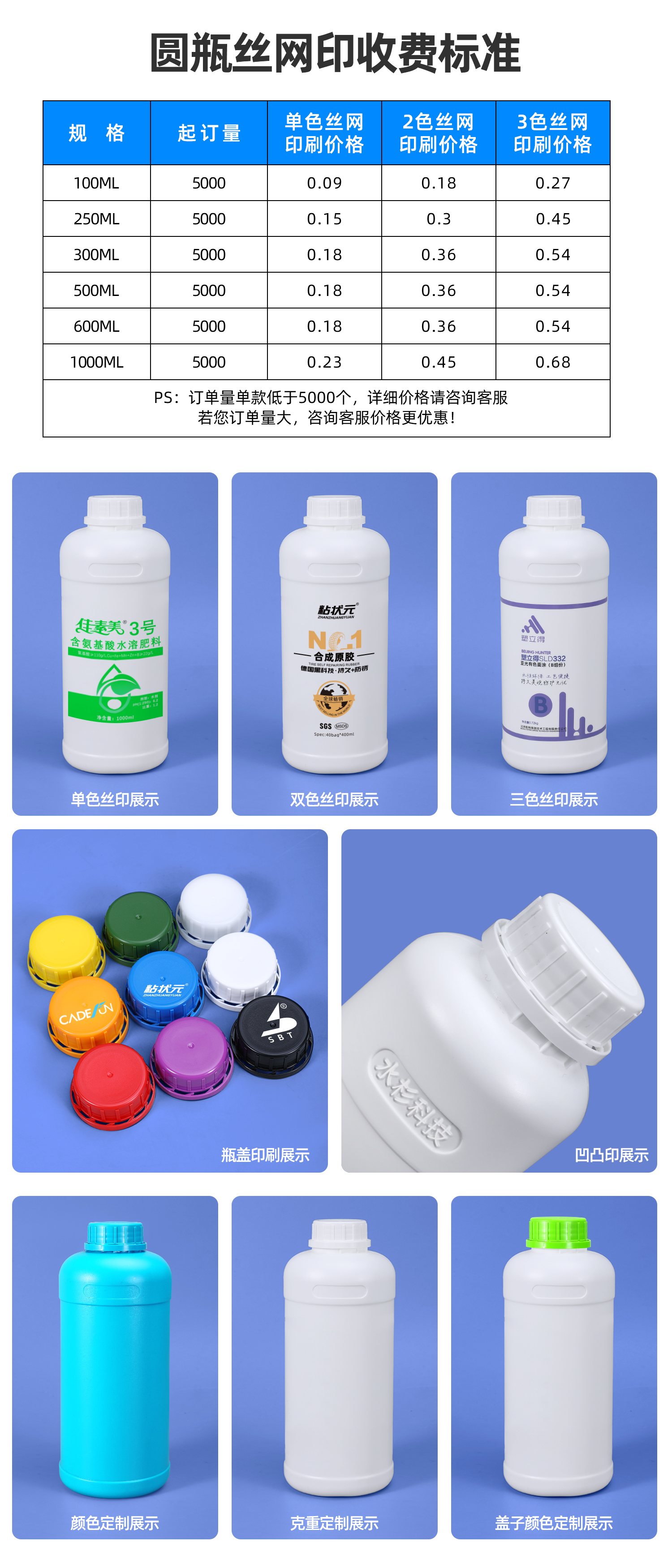 | Цветовые варианты | 100 мл утолщенный белый (2 шт.), 100 мл утолщенный полупрозрачный (2 шт.), 100 мл утолщенный черный (2 шт.), 100 мл утолщенный черный без пищевого допуска (2 шт.), 250 мл утолщенный молочно-белый (2 шт.), 250 мл утолщенный полупрозрачный (2 шт.), 250 мл утолщенный синий (2 шт.), 250 мл утолщенный черный (2 шт.), 250 мл утолщенный черный без пищевого допуска (2 шт.), 300 мл утолщенный молочно-белый, 300 мл утолщенный полупрозрачный, 500 мл экономичный молочно-белый, 500 мл экономичный полупрозрачный, 500 мл утолщенный молочно-белый, 500 мл утолщенный полупрозрачный, 500 мл утолщенный синий, 500 мл утолщенный черный, 500 мл утолщенный черный без пищевого допуска, 500 мл утолщенный полупрозрачный с делениями, 600 мл утолщенный молочно-белый, 600 мл утолщенный полупрозрачный, 1000 мл экономичный молочно-белый, 1000 мл экономичный полупрозрачный, 1000 мл утолщенный молочно-белый, 1000 мл утолщенный полупрозрачный, 1000 мл утолщенный черный, 1000 мл утолщенный синий, 1000 мл утолщенный черный без пищевого допуска, 1000 мл утолщенный молочно-белый с делениями, 1000 мл утолщенный полупрозрачный с делениями, 1000 мл сверхутолщенный молочно-белый, 1000 мл сверхутолщенный полупрозрачный, 250 мл утолщенный молочно-белый + крышка-мерный колпачок, 250 мл утолщенный полупрозрачный + крышка-мерный колпачок, 250 мл утолщенный синий + крышка-мерный колпачок, 300 мл утолщенный молочно-белый + крышка-мерный колпачок, 500 мл утолщенный молочно-белый + крышка-мерный колпачок, 500 мл утолщенный полупрозрачный + крышка-мерный колпачок, 500 мл утолщенный синий + крышка-мерный колпачок, 500 мл утолщенный черный + крышка-мерный колпачок, 600 мл утолщенный молочно-белый + крышка-мерный колпачок, 1000 мл утолщенный молочно-белый + крышка-мерный колпачок, 1000 мл утолщенный синий + крышка-мерный колпачок, 1000 мл утолщенный черный + крышка-мерный колпачок, 250 мл утолщенный молочно-белый B модель (2 шт.), 250 мл утолщенный полупрозрачный B модель (2 шт.), 500 мл утолщенный молочно-белый B модель, 500 мл утолщенный полупрозрачный B модель, 1000 мл утолщенный молочно-белый B модель, 1000 мл утолщенный полупрозрачный B модель, 500 мл утолщенный молочно-белый большой горлышко с внутренней крышкой, 500 мл утолщенный полупрозрачный большой горлышко с внутренней крышкой, 500 мл утолщенный черный большой горлышко с внутренней крышкой, 1000 мл утолщенный молочно-белый большой горлышко с внутренней крышкой, 1000 мл утолщенный полупрозрачный большой горлышко с внутренней крышкой, 1000 мл утолщенный черный большой горлышко с внутренней крышкой |
