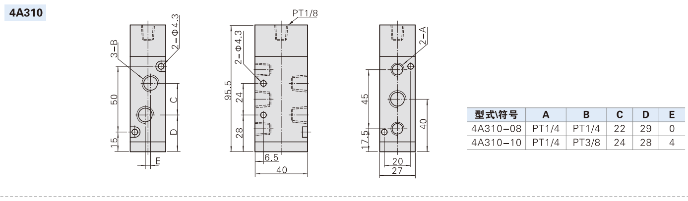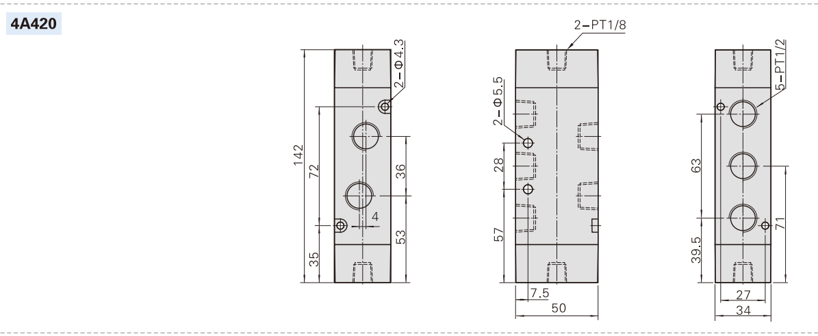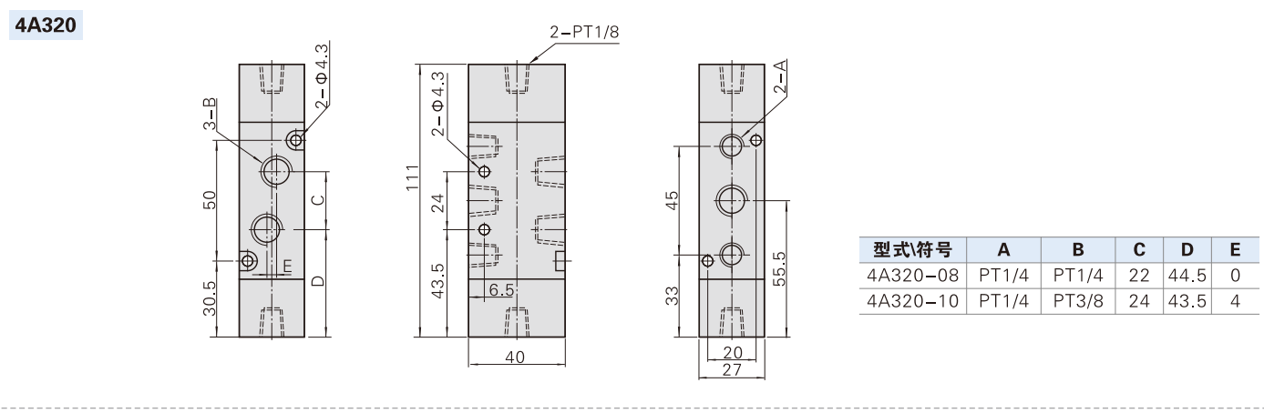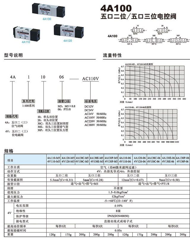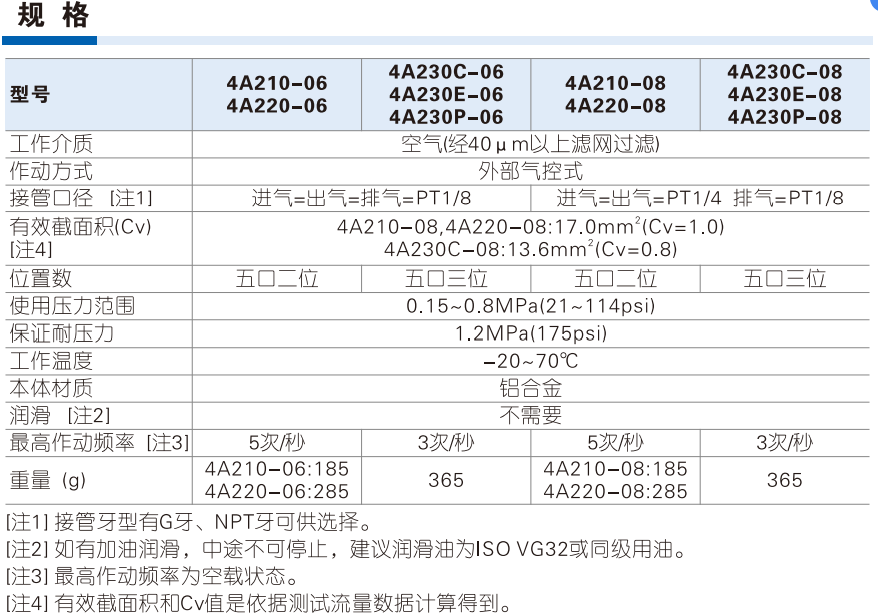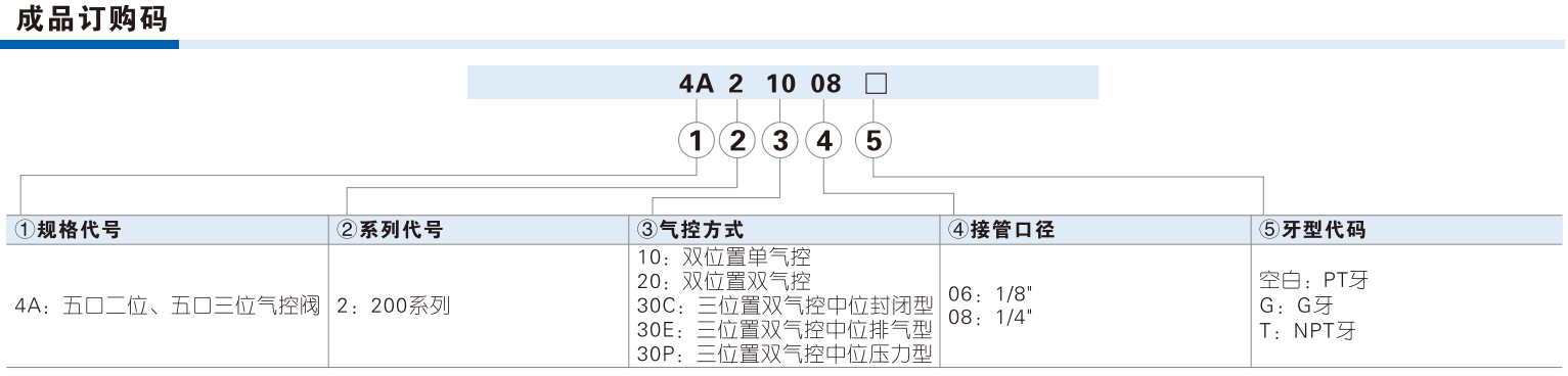 Пневматический управляющий клапан распределительного типа 4A210/220-08/230C с двойным воздушным управлением 310-10/410-15