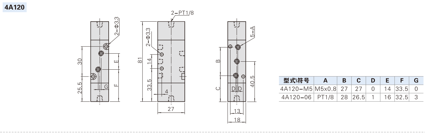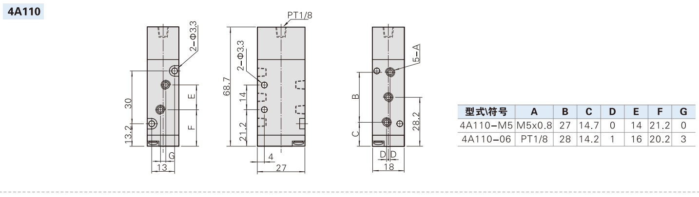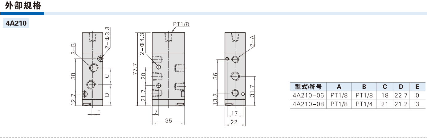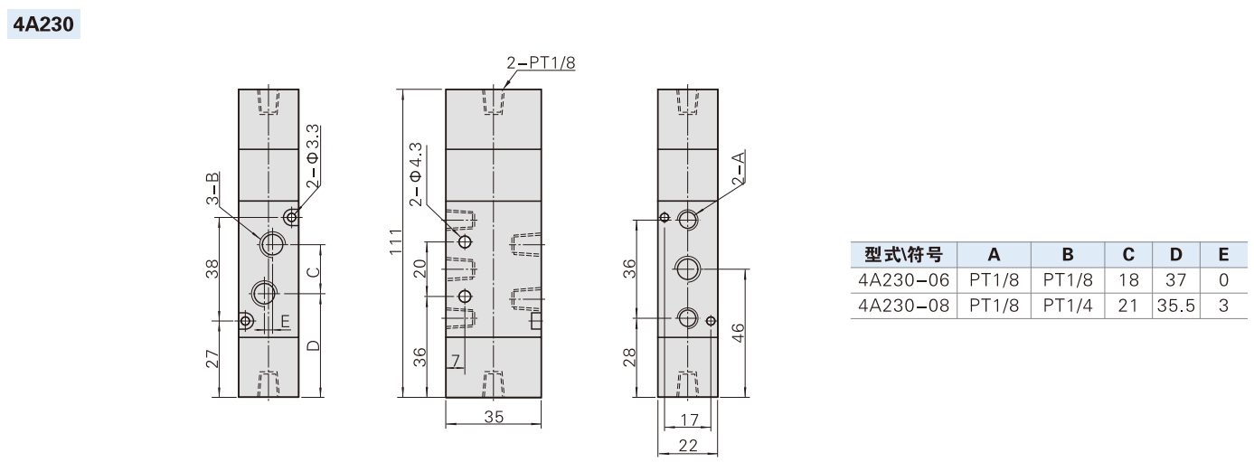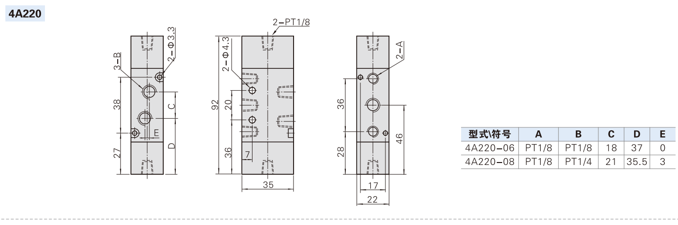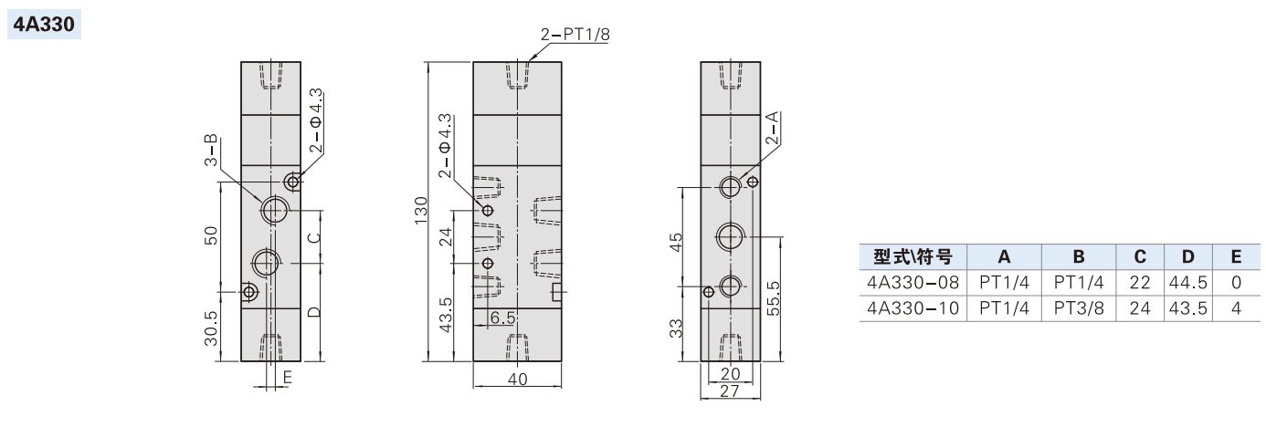 Пневматический управляющий клапан распределительного типа 4A210/220-08/230C с двойным воздушным управлением 310-10/410-15