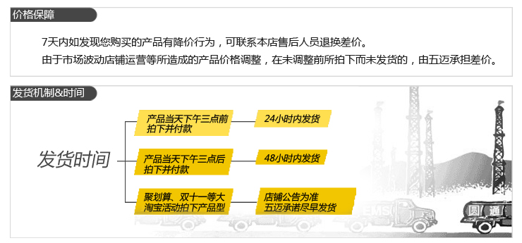 圆通快递(送货上门):1--2天广东首重8元,续重每公斤1元,其它省首重10元,续重每公斤4-8元,亲们可与掌柜联系。 中国邮政(需要自提):7-10天到货,费用每公斤2-3,按实际收取。 物流(自提/派送 均可):3-10天到货,可到付,费用按实际收取。 |