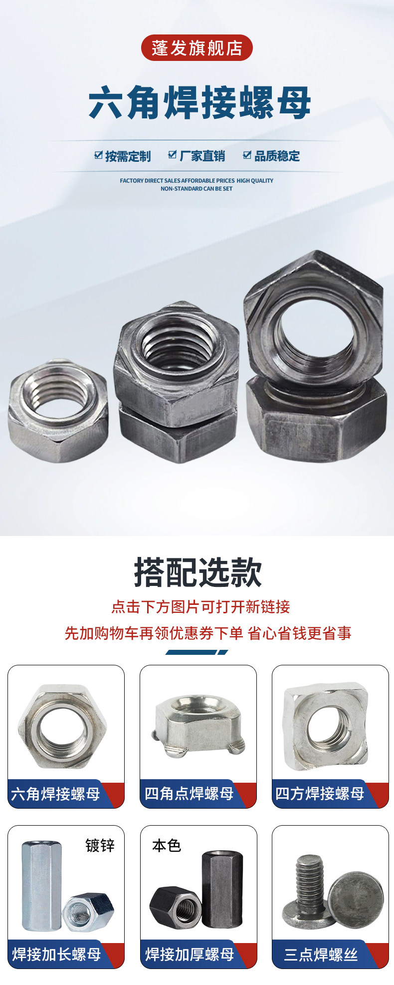 | Цветовые варианты | Естественный цвет железа M4*10 под ключ - шестигранник с точкой сварки (200 шт.), Естественный цвет железа M5*10 - шестигранник с точкой сварки (200 шт.), Естественный цвет железа M5*11 - шестигранник с точкой сварки (200 шт.), Естественный цвет железа M6*11 - шестигранник с точкой сварки (200 шт.), Естественный цвет железа M8*14 - шестигранник с точкой сварки (100 шт.), Естественный цвет железа M10*17 - шестигранник с точкой сварки (50 шт.), Естественный цвет железа M12*19 - шестигранник с точкой сварки (50 шт.), Естественный цвет железа M14*22 - шестигранник с точкой сварки (20 шт.), Естественный цвет железа M16*24 - шестигранник с точкой сварки (10 шт.), Естественный цвет железа M4*10 - шестигранник без точки сварки (200 шт.), Естественный цвет железа M5*10 - шестигранник без точки сварки (200 шт.), Естественный цвет железа M6*11 - шестигранник без точки сварки (200 шт.), Естественный цвет железа M8*14 - шестигранник без точки сварки (100 шт.), Естественный цвет железа M10*17 - шестигранник без точки сварки (50 шт.), Естественный цвет железа M12*19 - шестигранник без точки сварки (50 шт.), Естественный цвет железа M14*22 - шестигранник без точки сварки (20 шт.), Естественный цвет железа M16*24 - шестигранник без точки сварки (10 шт.), Естественный цвет железа M10*1 мелкая резьба шестигранник с точкой сварки (50 шт.), Естественный цвет железа M10*1.25*17 под ключ мелкая резьба шестигранник с точкой сварки (50 шт.), Естественный цвет железа M12*1.25*19 под ключ мелкая резьба шестигранник с точкой сварки (20 шт.), Естественный цвет железа M12*1.5*19 под ключ мелкая резьба шестигранник с точкой сварки (20 шт.), Естественный цвет железа M14*1.5*22 под ключ мелкая резьба шестигранник с точкой сварки (10 шт.), Естественный цвет железа M16*1.5*24 под ключ мелкая резьба шестигранник с точкой сварки (10 шт.), Естественный цвет железа 1/4-20 резьба под ключ 11 шестигранник с точкой сварки (100 шт.), Естественный цвет железа 5/16-18 резьба под ключ 14 шестигранник с точкой сварки (50 шт.), Естественный цвет железа 3/8-16 резьба под ключ 17 шестигранник с точкой сварки (50 шт.), Естественный цвет железа 1/2-13 резьба под ключ 19 шестигранник с точкой сварки (50 шт.), Естественный цвет железа M5*8 - квадратная сварная гайка типа B (500 шт.), Естественный цвет железа M5*9 - квадратная сварная гайка типа B (200 шт.), Естественный цвет железа M5*10 - квадратная сварная гайка типа B (200 шт.), Естественный цвет железа M6*10 - квадратная сварная гайка типа B (200 шт.), Естественный цвет железа M8*12 - квадратная сварная гайка типа B (100 шт.), Естественный цвет железа M8*13 - квадратная сварная гайка типа B (100 шт.), Естественный цвет железа M8*14 - квадратная сварная гайка типа B (100 шт.), Естественный цвет железа M10*14 - квадратная сварная гайка типа B (100 шт.), Естественный цвет железа M10*16 - квадратная сварная гайка типа B (50 шт.), Естественный цвет железа M12*19 - квадратная сварная гайка типа B (20 шт.), Естественный цвет железа M14*21 - квадратная сварная гайка типа B (10 шт.), Естественный цвет железа M16*24 - квадратная сварная гайка типа B (5 шт.), Естественный цвет железа M10*1.25*14 под ключ*7.1 толщина мелкая резьба квадратная сварка с точкой сварки (50 шт.), Естественный цвет железа M10*1.25*16 мелкая резьба квадратная сварка с точкой сварки (50 шт.), Естественный цвет железа M12*1.25*19 мелкая резьба квадратная сварка с точкой сварки (20 шт.), Естественный цвет железа M12*1.25*18 мелкая резьба квадратная сварка с точкой сварки (20 шт.), Естественный цвет железа M14*1.5*21 под ключ мелка