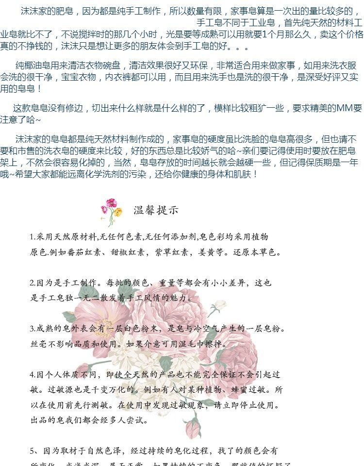 (本店现在是店厂合一,欢迎顾客厂家批发定制,接受代加工植物油冷制皂,可以开具国家税务正规发票,税费另计,详情请联系客服)。