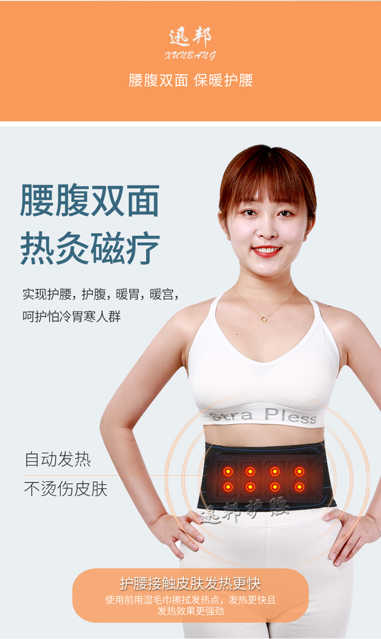 首先将护腰的中间发热部分用干净的湿毛巾擦湿,然后将护腰直接固定在皮肤表面。为了保证人身安全,所以发热比较缓慢,一般40分钟左右即可感觉到明显的热感,根据每个人的身体情况,决定佩戴时间的长短,如果使用后,皮肤有灼热的感觉,属正常情况,请暂时摘下。决不会损伤皮肤,不擦湿也可使用,只是预热时间较长。