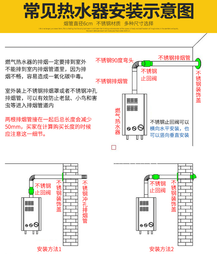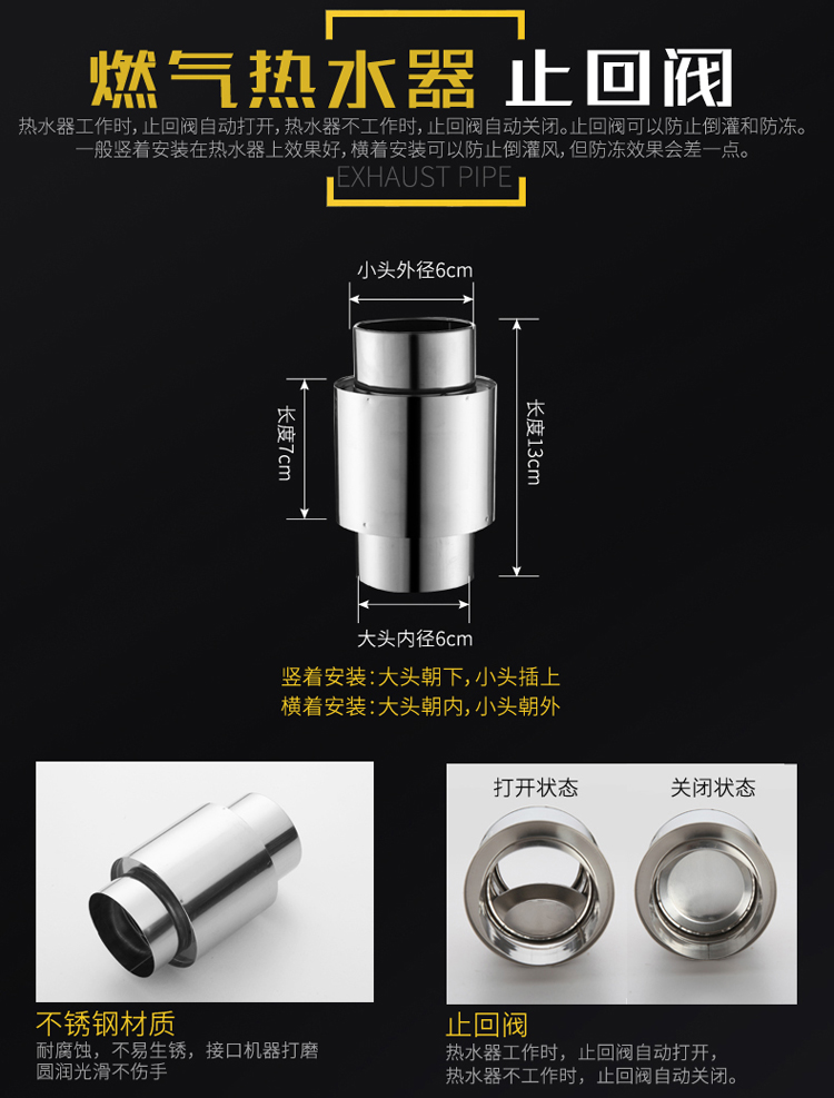 | Цветовые варианты | 6 см колено, 6 см × 20 см дымоотводная труба, 6 см × 30 см дымоотводная труба, 6 см × 40 см дымоотводная труба, 6 см × 50 см дымоотводная труба, 6 см × 50 см гофрированная дымоотводная труба, 6 см × 100 см дымоотводная труба, 6 см × 100 см гофрированная дымоотводная труба, 6 см × 50 см уличный противоветровой клапан, 6 см обратный клапан, 6 см декоративная крышка, алюминиевая дымовая труба 6 см с выдвижной длиной 1,5 м, 6 см седловой хомут, устойчивый к разрыву алюминиевый фольгированный скотч 1 рулон, обычный алюминиевый фольгированный скотч 1 рулон, раздельная 6 см декоративная крышка, 6 см × 60 см дымоотводная труба, 6 см × 70 см дымоотводная труба, 6 см × 80 см дымоотводная труба, 6 см × 90 см дымоотводная труба, новая модель 6 см × 55-95 см телескопическая труба, новая модель 6 см × 105-195 см телескопическая труба |