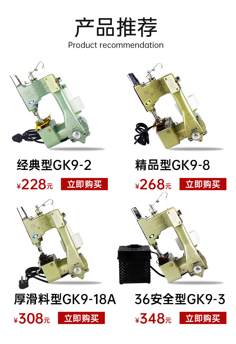 Классическая модель (GK9-2), премиум (GK9-8), для плотных и гладких материалов (GK9-18A), 36В безопасное напряжение (GK9-3), аксессуары - 50 запечатывающих игл