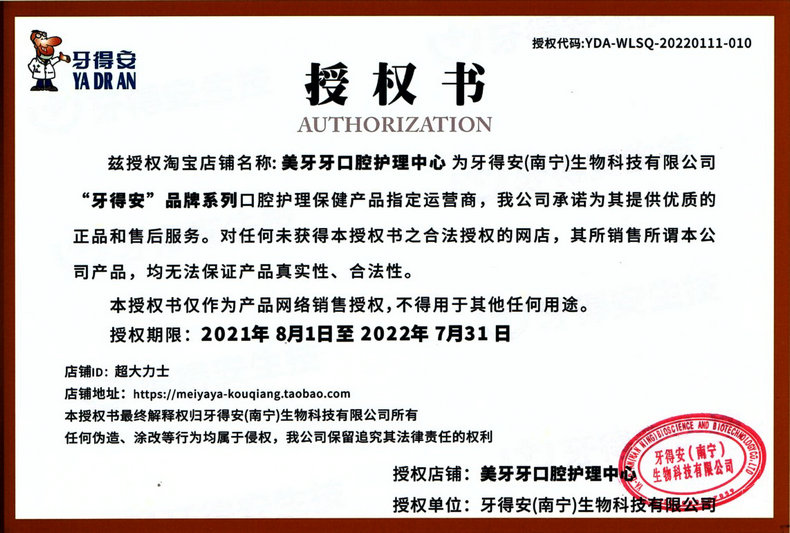生产:牙得安(南宁)生物科技有限公司
