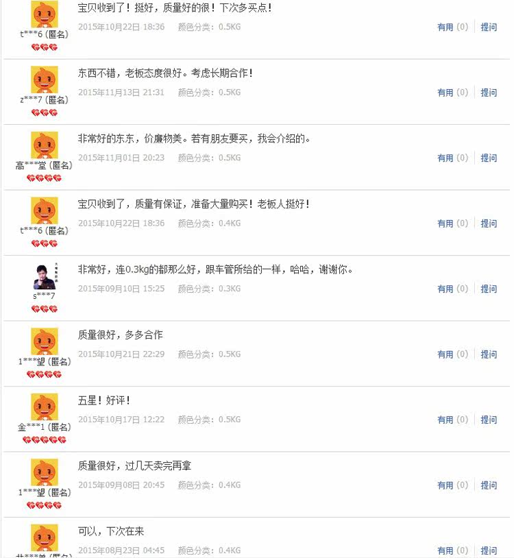 宝贝重量:约0.3千克 0.4千克 0.50千克