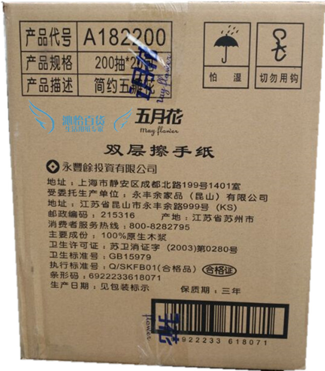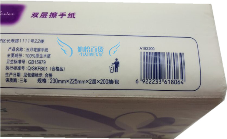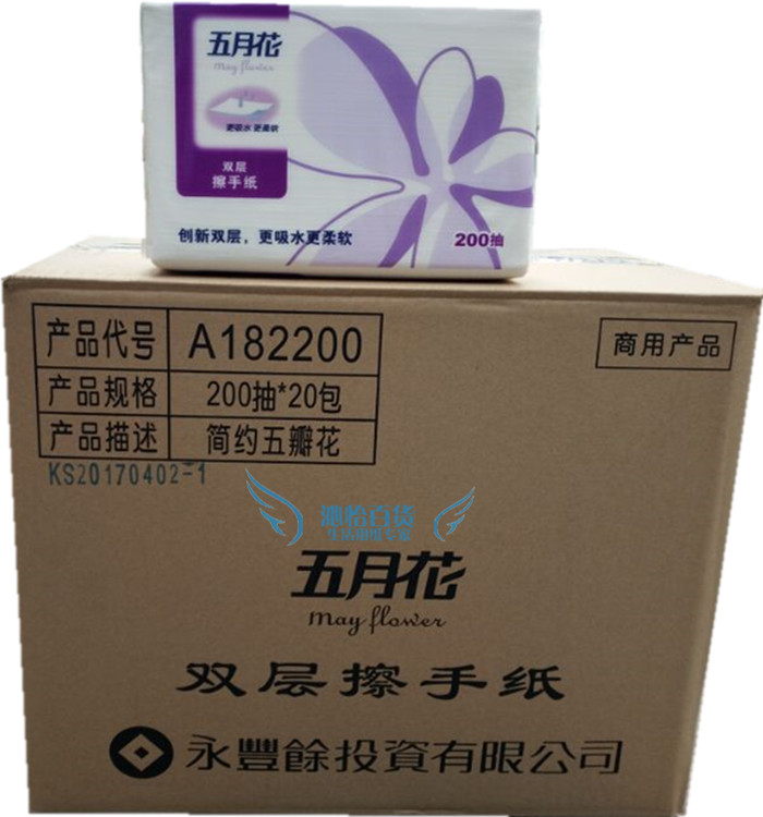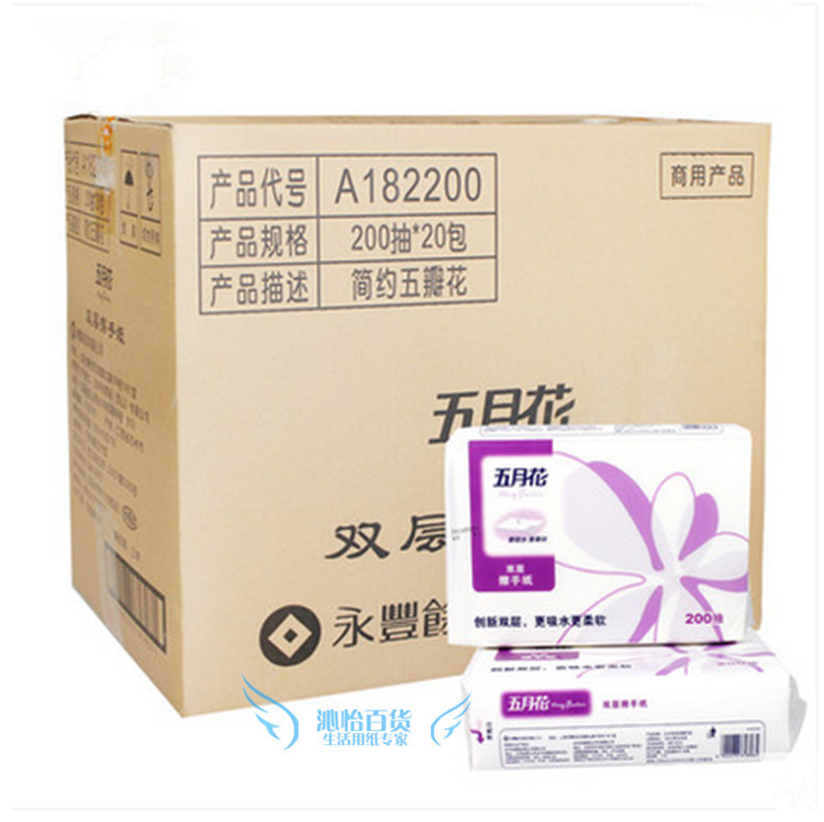 五月花A182200双层200抽擦手纸 吸水纸 抹手纸 整箱江浙沪皖包邮 整箱20包