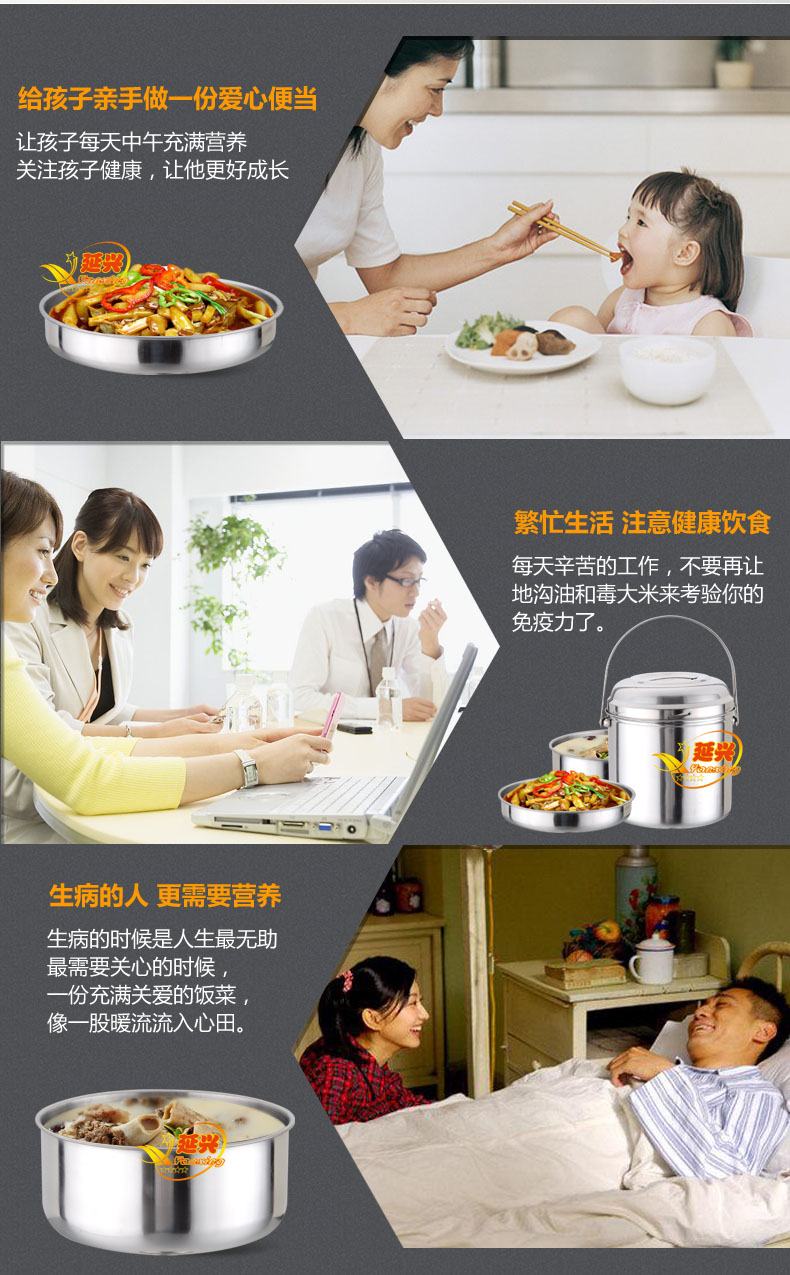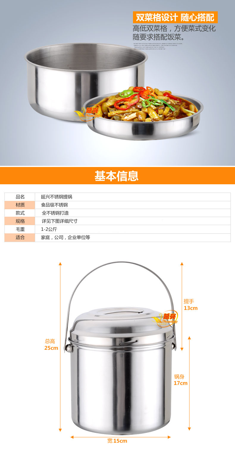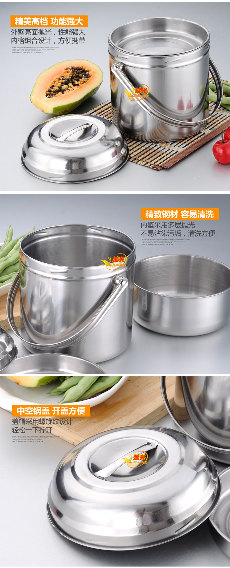 注:430系列材质为不锈钢带磁材料,本提锅可以做为便当饭盒也可以当提锅使用喔,不是双层保温提锅喔!