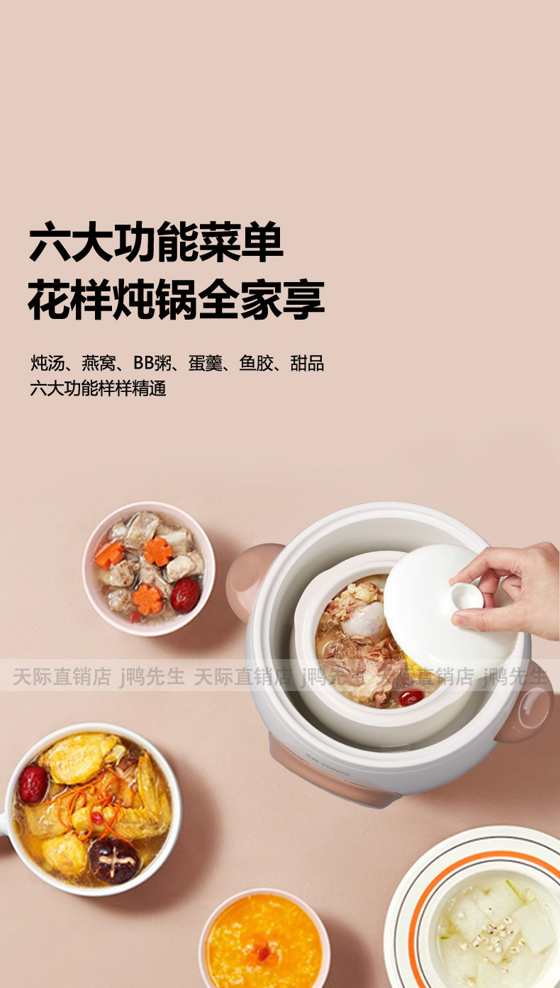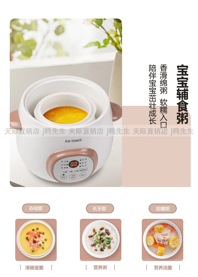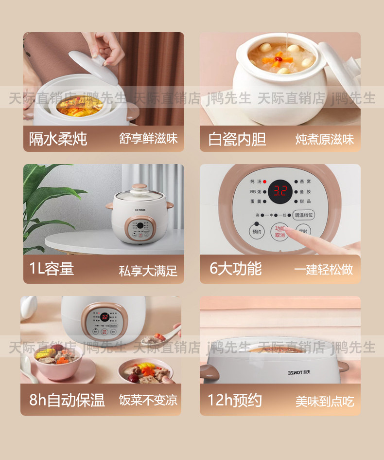 Мини электрическая тушилка Tianji для детского питания, супов, каши, домашняя водяная баня для тушения, электрическая кастрюля для гнезда птиц, каша для младенцев