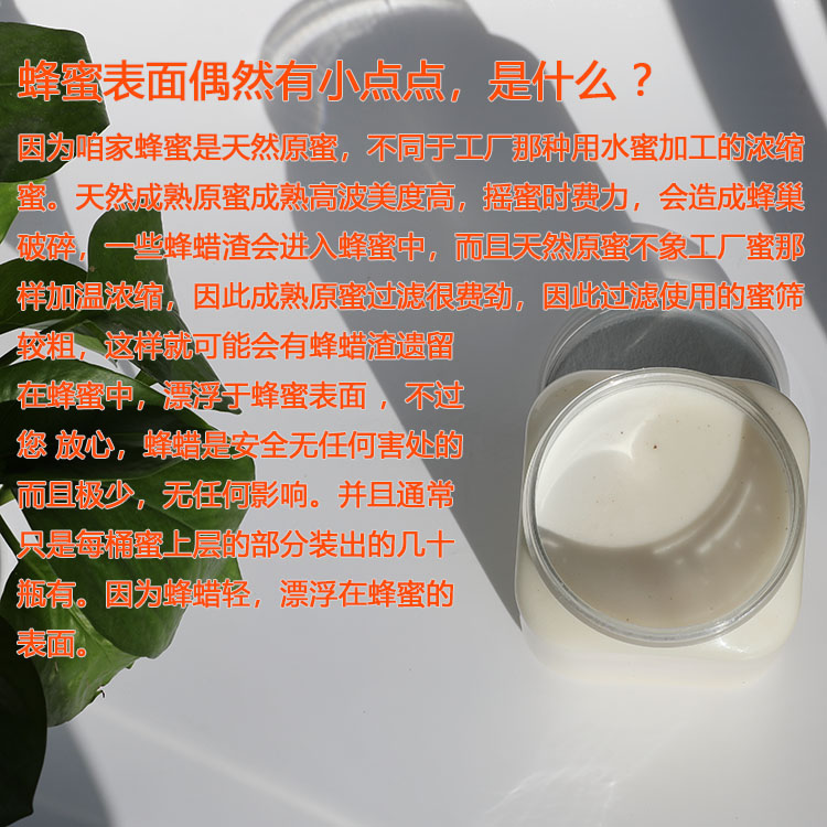 提示提示:::(如果在高温天气,没浓缩的天然蜂蜜高温会变稀,建议您尽量把蜂产品放冰箱保存,虽然成熟常温不会坏,但是长期高温也会损失一些营养活性)