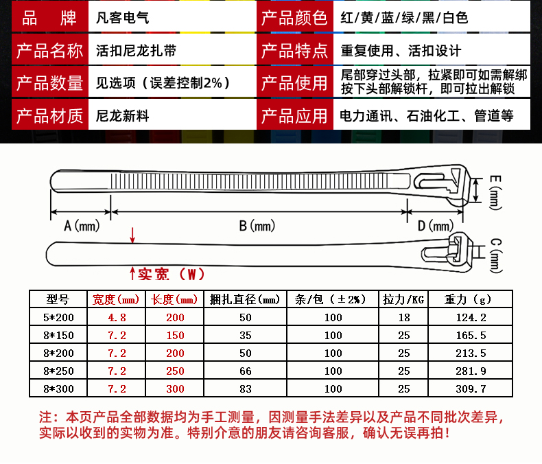 | Цветовые варианты | 4*200/Белый/2.9 мм ширина (50 шт.) с самозапирающимся замком, 5*200/набор из белого, черного, красного, желтого, синего, зеленого цветов/100 шт., 8*150/набор из белого, черного, красного, желтого, синего, зеленого цветов/100 шт., 8*200/набор из белого, черного, красного, желтого, синего, зеленого цветов/100 шт., 8*250/набор из белого, черного, красного, желтого, синего, зеленого цветов/100 шт., 8*300/набор из белого, черного, красного, желтого, синего, зеленого цветов/100 шт., 5*200/белый/ширина 4.8 мм (100 шт.), 5*200/черный/ширина 4.8 мм (100 шт.), 5*200/красный/ширина 4.8 мм (100 шт.), 5*200/желтый/ширина 4.8 мм (100 шт.), 5*200/синий/ширина 4.8 мм (100 шт.), 5*200/зеленый/ширина 4.8 мм (100 шт.), 8*150/черный/ширина 7.2 мм (100 шт.), 8*150/белый/ширина 7.2 мм (100 шт.), 8*150/желтый/ширина 7.2 мм (100 шт.), 8*150/синий/ширина 7.2 мм (100 шт.), 8*150/красный/ширина 7.2 мм (100 шт.), 8*150/зеленый/ширина 7.2 мм (100 шт.), 8*200/белый/ширина 7.2 мм (100 шт.), 8*200/черный/ширина 7.2 мм (100 шт.), 8*200/красный/ширина 7.2 мм (100 шт.), 8*200/желтый/ширина 7.2 мм (100 шт.), 8*200/синий/ширина 7.2 мм (100 шт.), 8*200/зеленый/ширина 7.2 мм (100 шт.), 8*250/черный/ширина 7.2 мм (100 шт.), 8*250/белый/ширина 7.2 мм (100 шт.), 8*250/красный/ширина 7.2 мм (100 шт.), 8*250/желтый/ширина 7.2 мм (100 шт.), 8*250/синий/ширина 7.2 мм (100 шт.), 8*250/зеленый/ширина 7.2 мм (100 шт.), 8*300/черный/ширина 7.2 мм (100 шт.), 8*300/белый/ширина 7.2 мм (100 шт.), 8*300/красный/ширина 7.2 мм (100 шт.), 8*300/желтый/ширина 7.2 мм (100 шт.), 8*300/синий/ширина 7.2 мм (100 шт.), 8*300/зеленый/ширина 7.2 мм (100 шт.) |