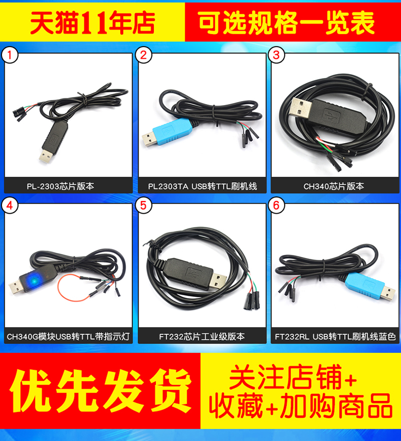 Версия с чипом PL-2303 (1 шт.) USB-TTL кабель прошивки PL2303TA, поддержка XP WIN7 WIN8 WIN10 (1 шт.) Версия с чипом CH340 (1 шт.) USB-TTL кабель прошивки с модулем CH340G с индикатором (1 шт.) Промышленная версия с чипом FT232 (1 шт.) USB-TTL кабель прошивки FT232RL промышленного класса (синий корпус) (1 шт.) Кабель загрузки PL2303GT на RS232 уровня (1 шт.) Кабель загрузки CH340 на TYPE-C, 1 м (1 шт.) Кабель загрузки PL2303 на TYPE-C, 1 м (1 шт.) Кабель загрузки CP2102 на TYPE-C, 1 м (1 шт.) Кабель загрузки FT232 на TYPE-C, 1 м (1 шт.)