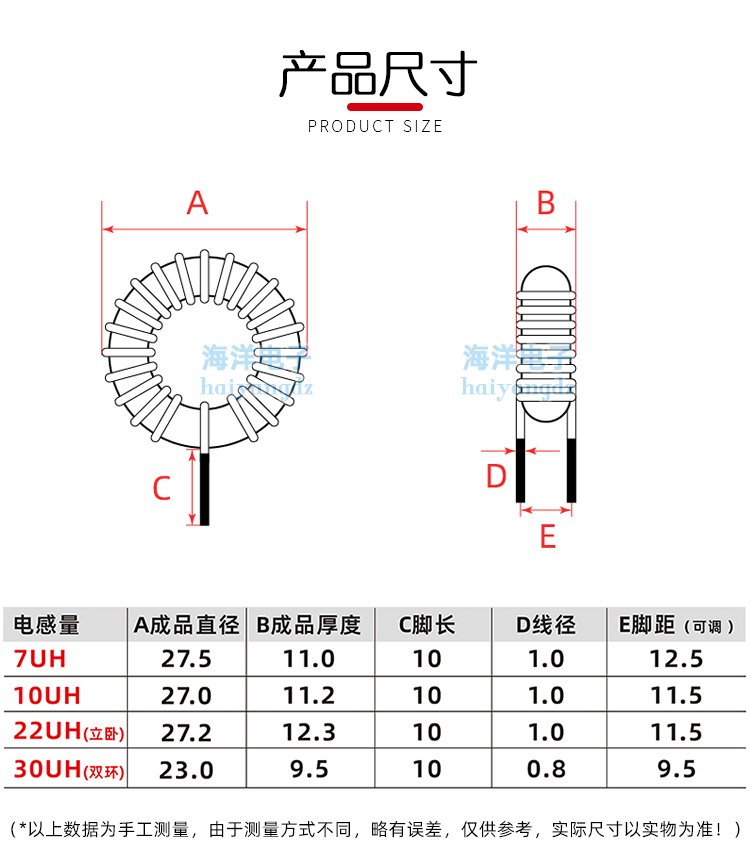 25мм 22UH 10UH10A1.0 провод 94-2 Импортное красное магнитное кольцо Красно-серое индуктивное кольцо для цифрового усилителя