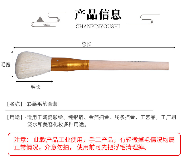 Мягкая кисть из овечьей шерсти S кисть для живописи с золотой и серебряной фольгой, кисть для подкраски, промышленная кисть для золочения, керамическая кисть для раскрашивания