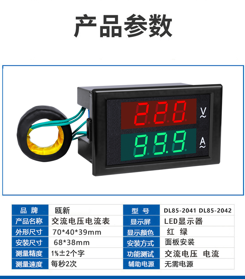 DL85-2041 2042 AC digital meter can measure the voltage and current at same time. When it run, you need not to supply any work power and current transformer
