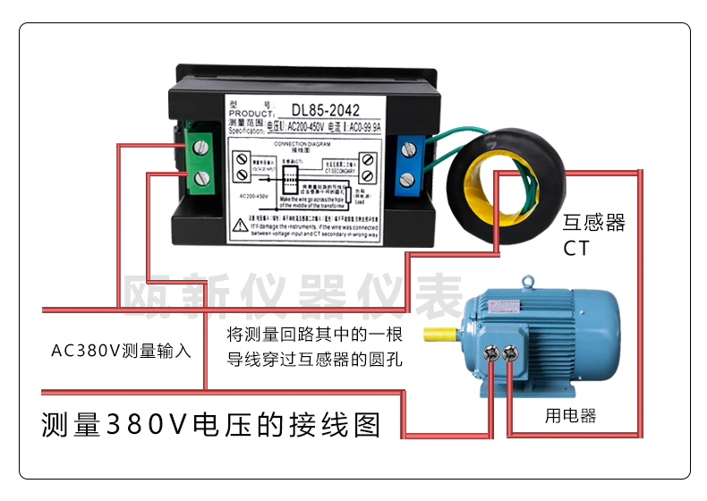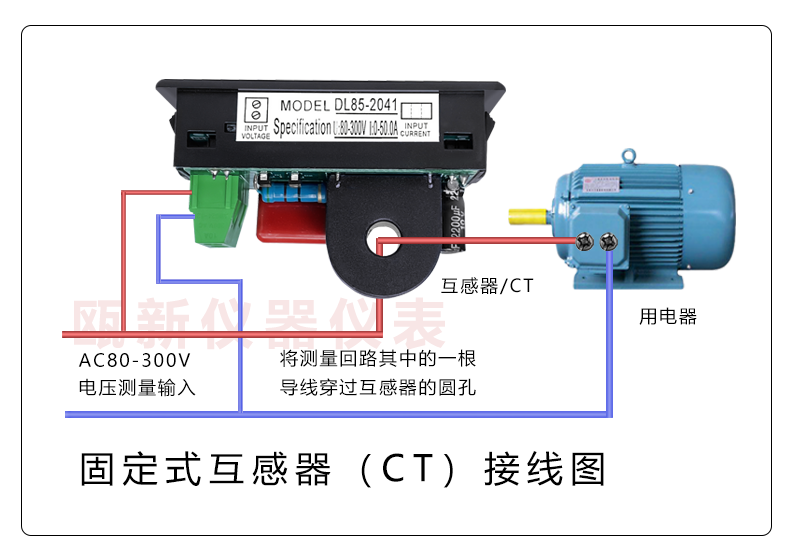 2:DL85-2042型:互感器与仪表分离,互感器可以根据测量的实际位置安装,互感器二次端引线可以加长0.5-3米,不影响测量精度。