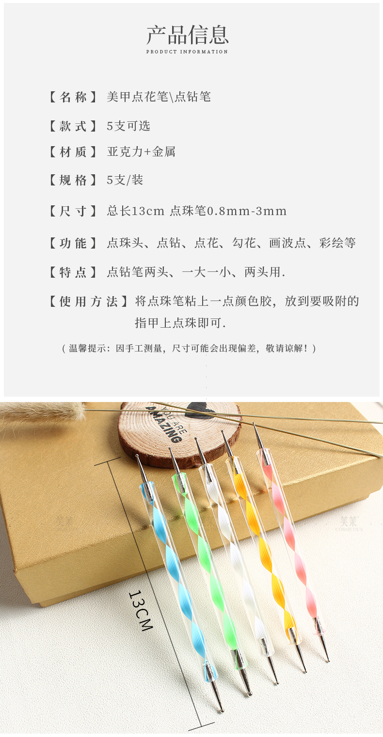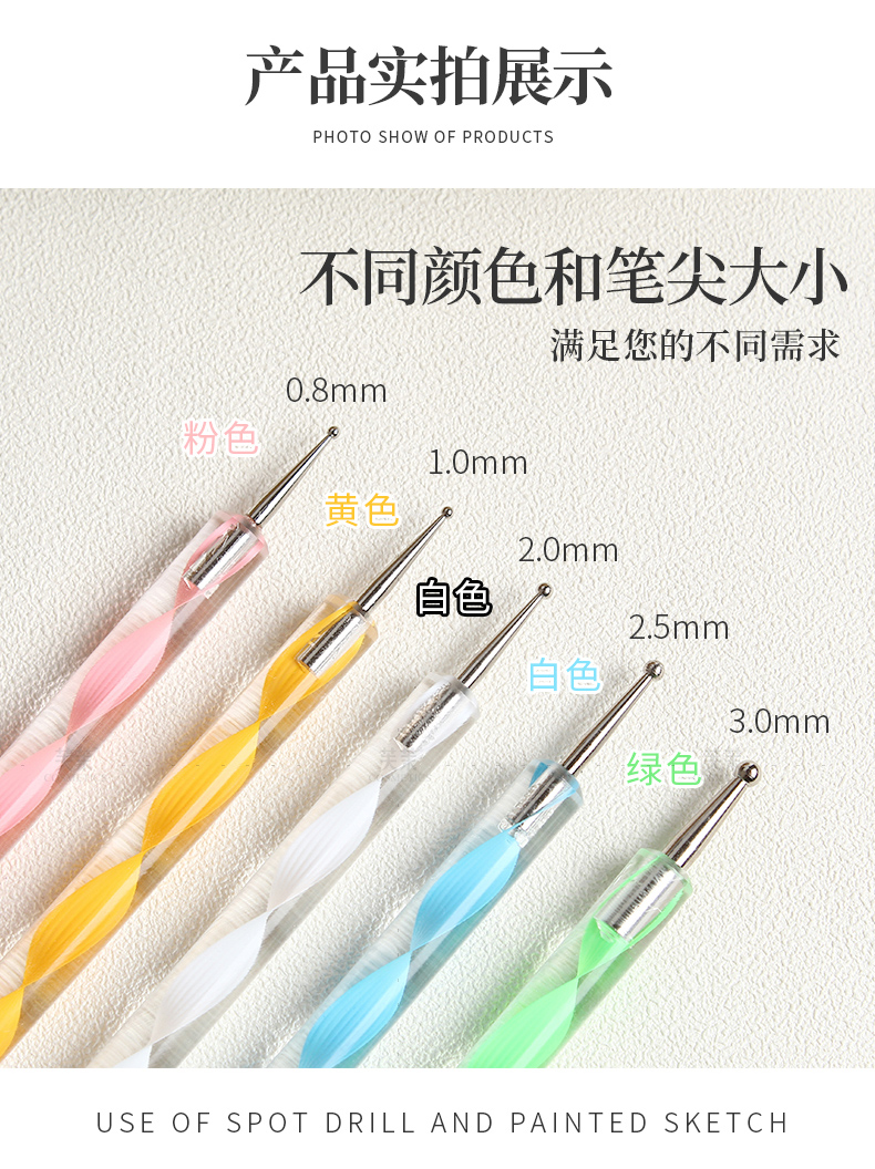 Двусторонняя ручка для создания точек на ногтях, набор из 5 шт. Инструменты для маникюра для начинающих, ручки для точечной и стразовой росписи