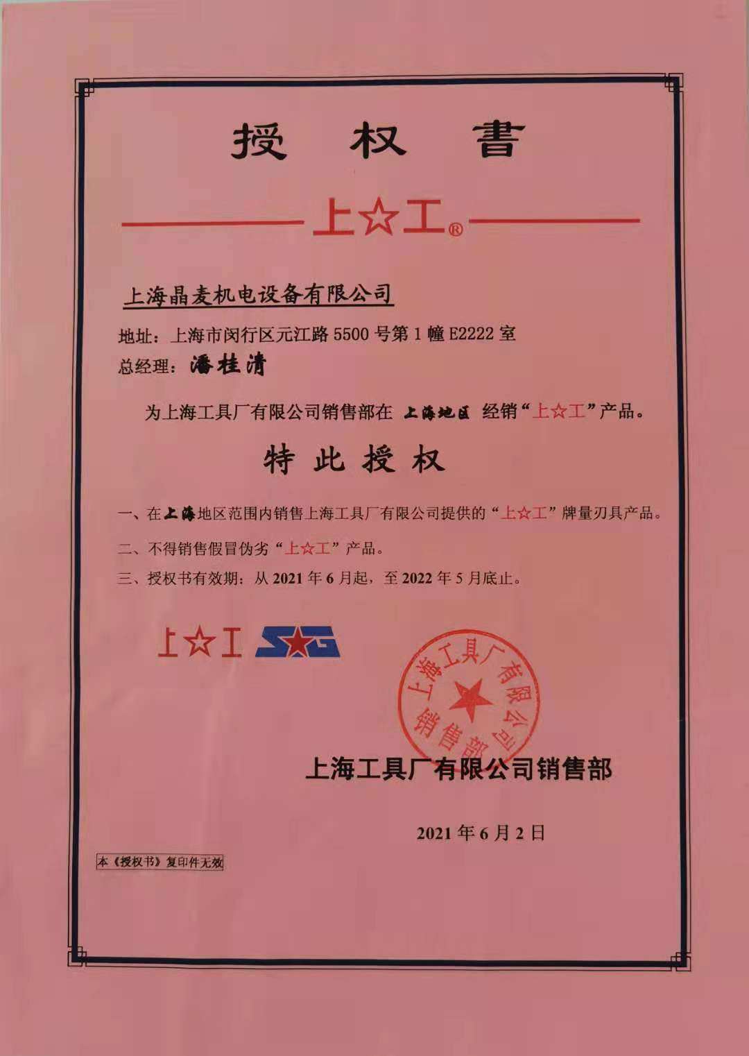 我们是上海工具厂有限公司经销商,有上工授权代理证书。销售的上工产品保证全部正宗,大量现货库存,网店全部为批发价。我们的口号是:和正宗的比价格,和价格低的比质量。