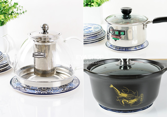 耐高低温,隔热性能强可承受-30℃—+120°,煲汤锅烧开后均可放在垫子上,不褪色不变形 |