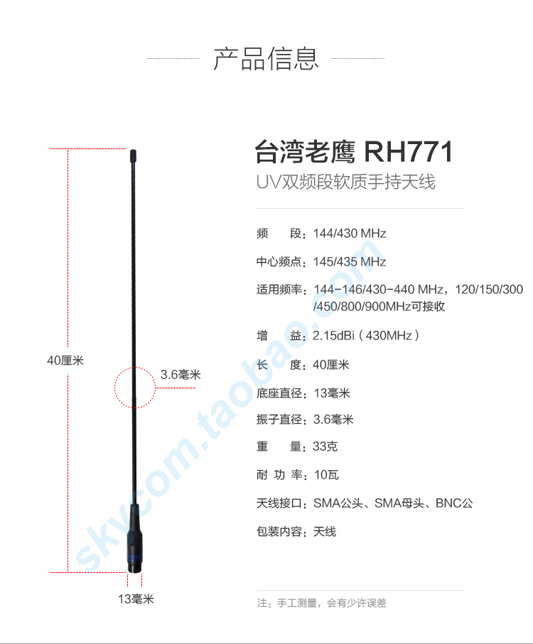 Антенна для портативной рации Taiwan Eagle UV двухдиапазонная RH771 мягкая 40см