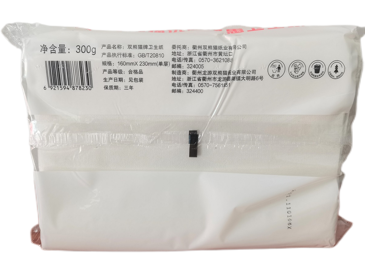 双熊猫皱纹平板卫生纸厕纸草纸 300克 江浙沪皖10包/件包邮送礼品