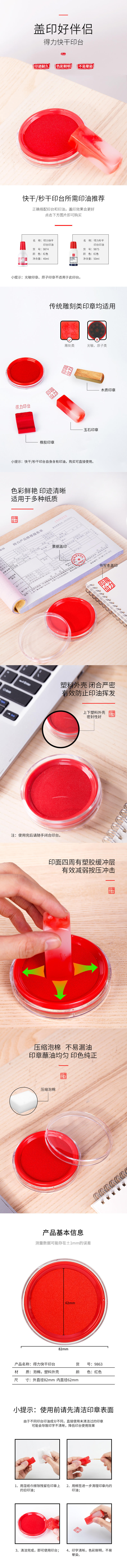 deli 9863 офисная штемпельная подушка Быстросохнущая штемпельная подушка Чернила Красный Синий Круглая прозрачная подушка