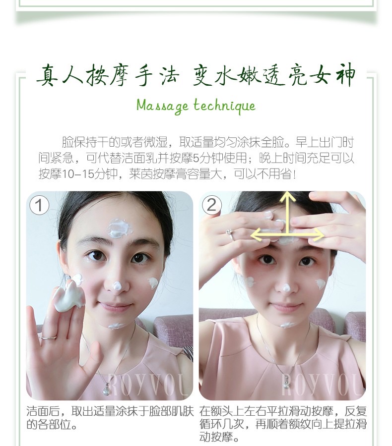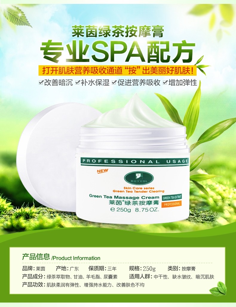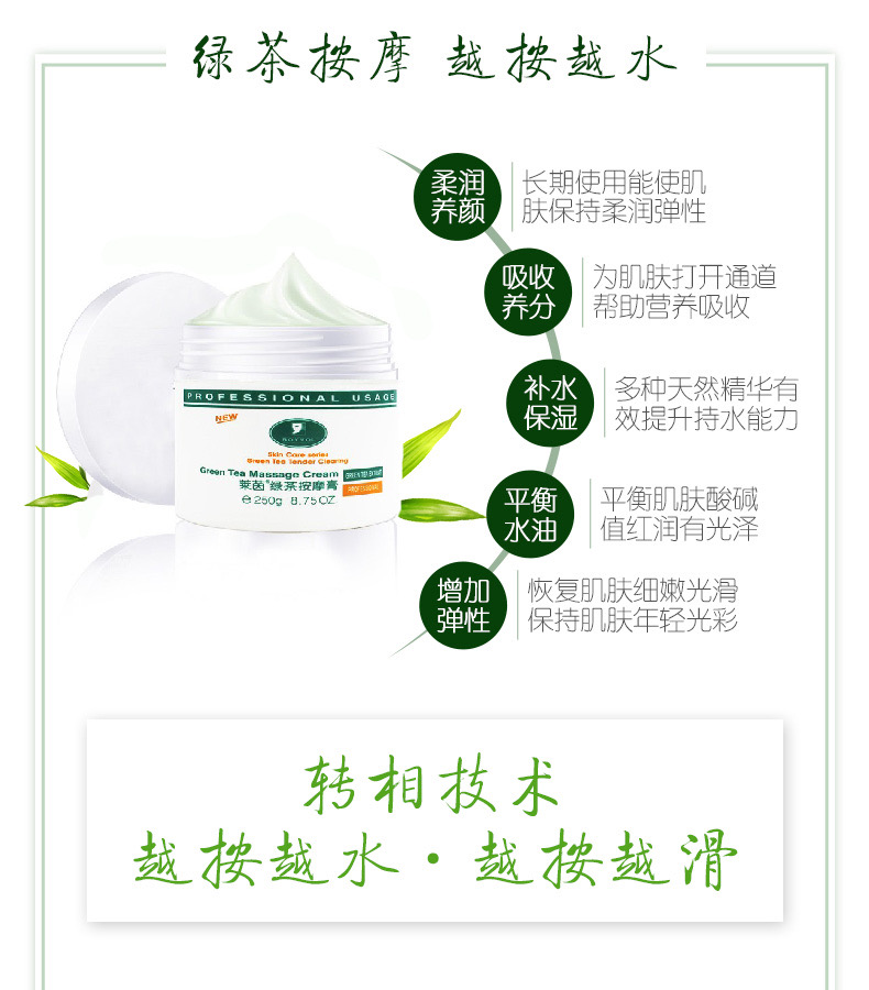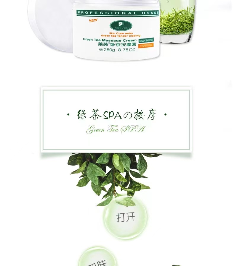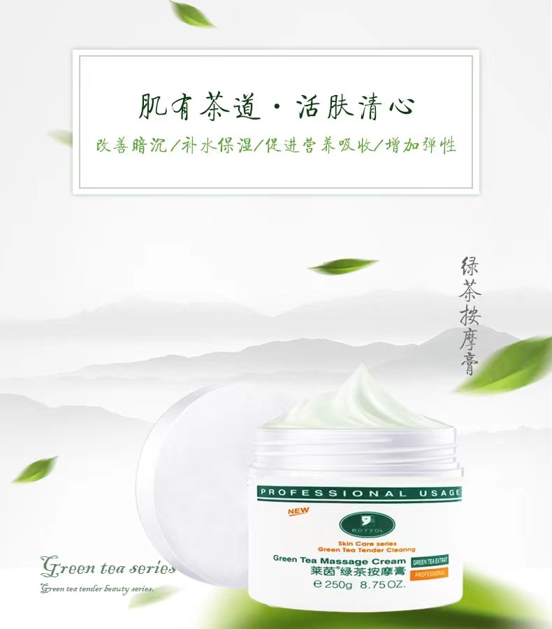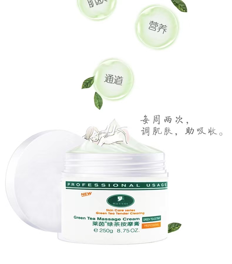 Массажный крем с зеленым чаем Рейн для увлажнения лица, контроля жирности, питания кожи шеи и тела, салонный объем