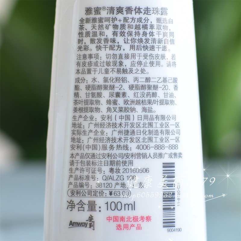 【产品名称】国产安利 美体适走珠止汗露(100ml)