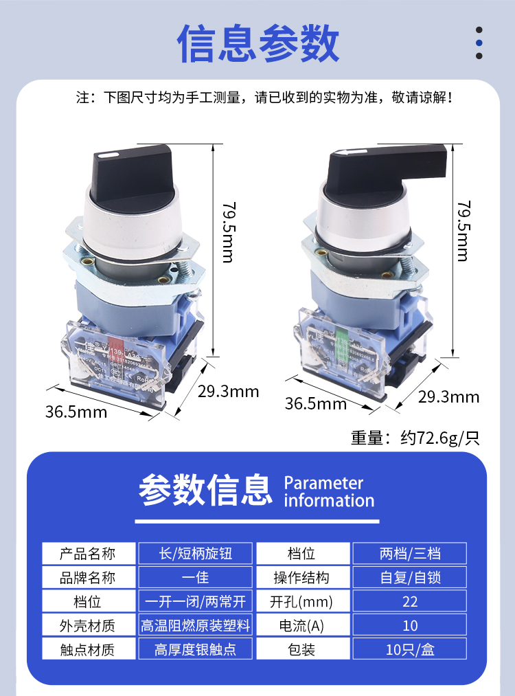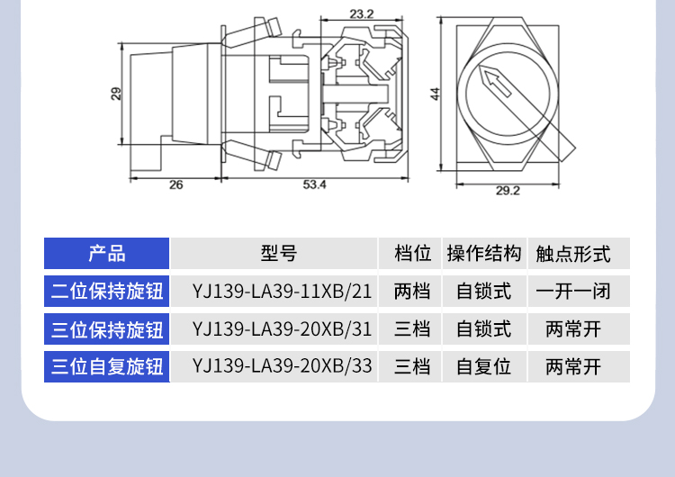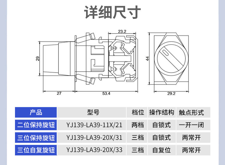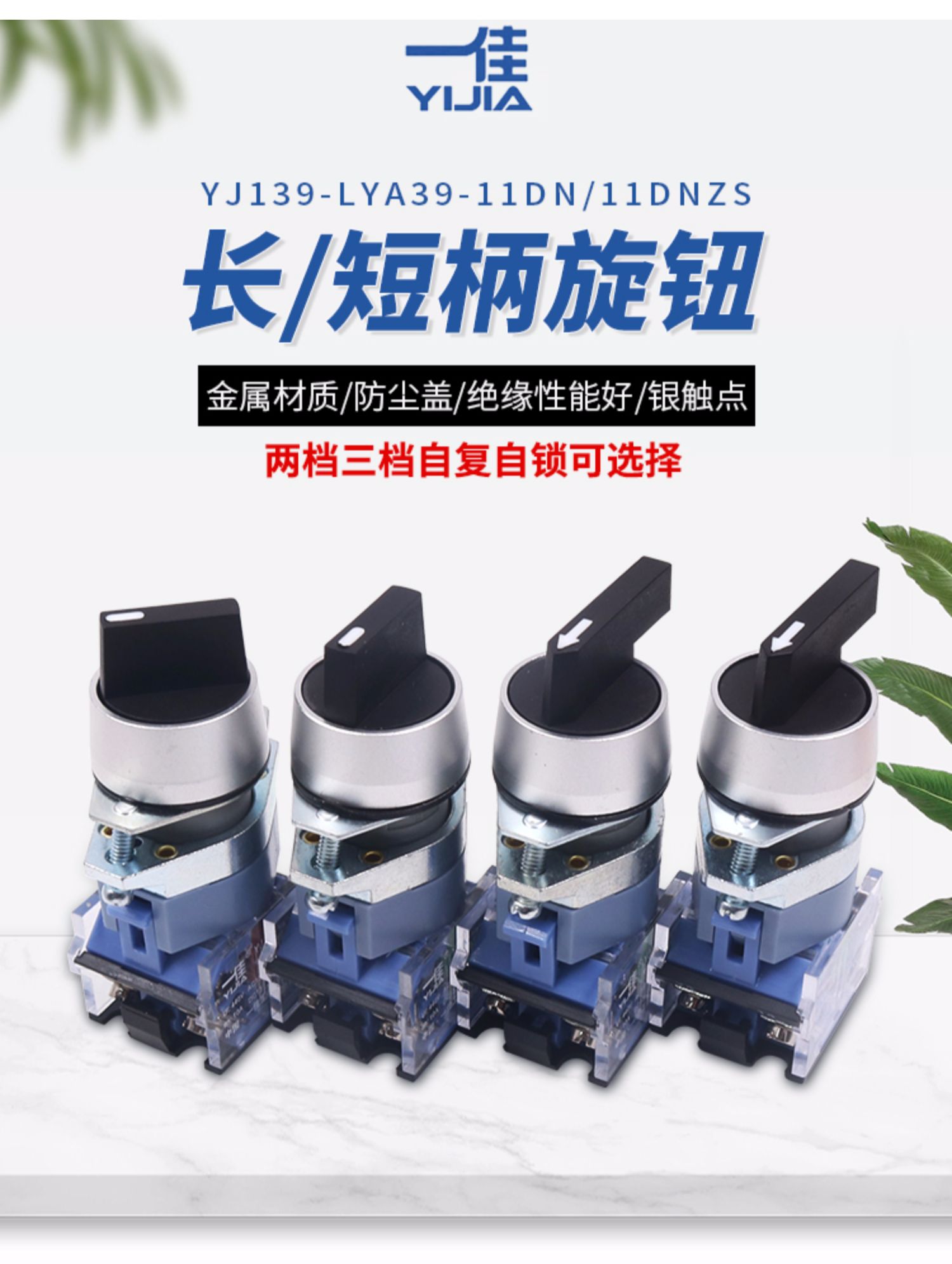 Двухпозиционный трехконтактный вращающийся переключатель Yijiali с самоблокировкой и самосбросом LA39-11X/2 с короткой ручкой, 22 мм
