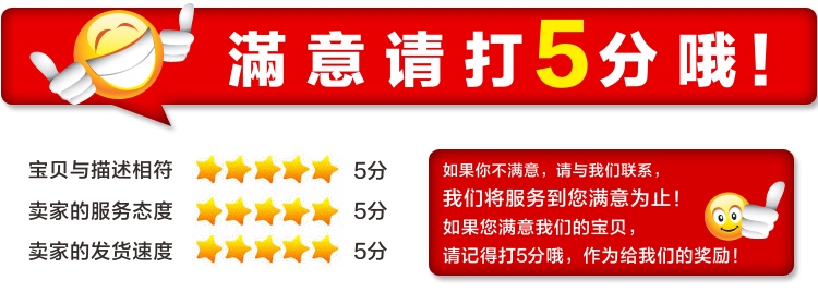 ◆关于评价:我们珍惜每一个好评,如果您有任何不满意,请先跟我们联系任何合理的问题都可以迅速给您解决。无任何沟通,贸然给出中差评,并不能解决任何问题。中肯的批评我们虚心接受,我们的工作肯定会存在这样那样的失误,也非常愿意为此承担责任。出现了问题,彼此之间多一份冷静和坦诚,请试着换位思考一下,相信任何问题都会迎刃而解的!
