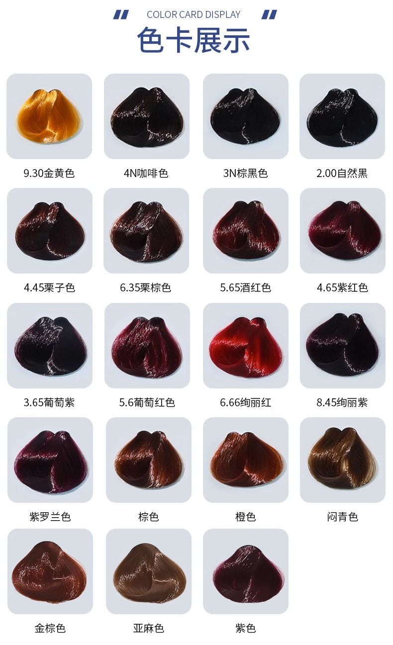 Цветовые варианты 2.00 Естественный черный, 3N Коричнево-черный, 3.65 Виноградный пурпурный, 4.45 Каштановый, 4N Кофейный, 5.65 Бордовый, 6 Льняной, 6.35 Каштаново-коричневый, 6.66 Ярко-красный, 8.45 Ярко-фиолетовый, Темно-синий, Фиолетовый