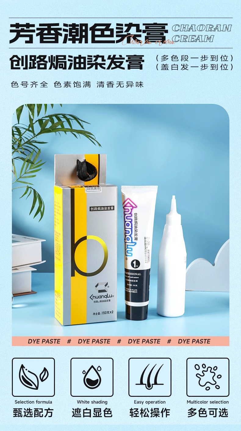 Оригинальная крем-краска для волос Baidefu Chuanglu с питательным маслом – постепенное окрашивание седины в черный