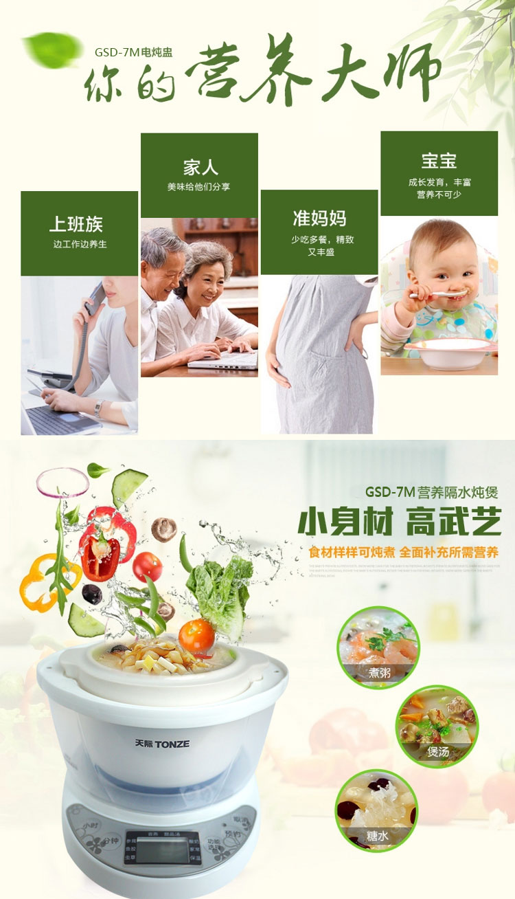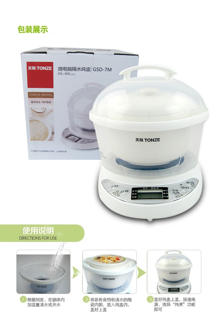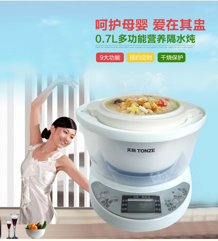 隔水炖优点:利用水蒸气加热食物,受热均匀,不沾不焦,能较好的保持原汁原味,炖出来的食品汤汁浓醇,汤色清澈,骨酥肉嫩,鲜味浓郁,特别是宝宝用了,不上火,炖盅里的水不会越来越少。