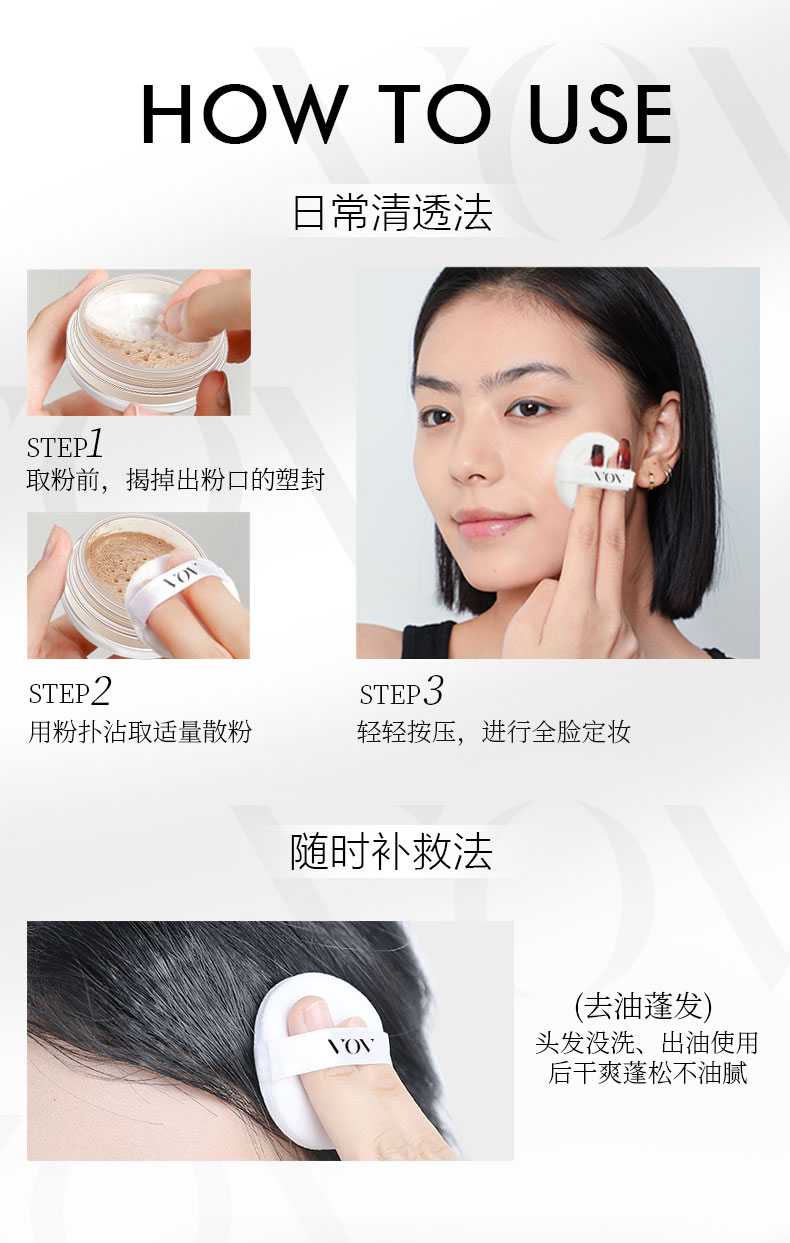 Легкая шелковистая рассыпчатая пудра VOV с эффектом тумана, тонкая прозрачная, ухаживающая за кожей, стойкая, натуральное покрытие, контроль жирности