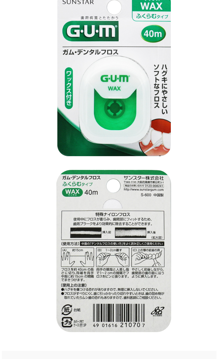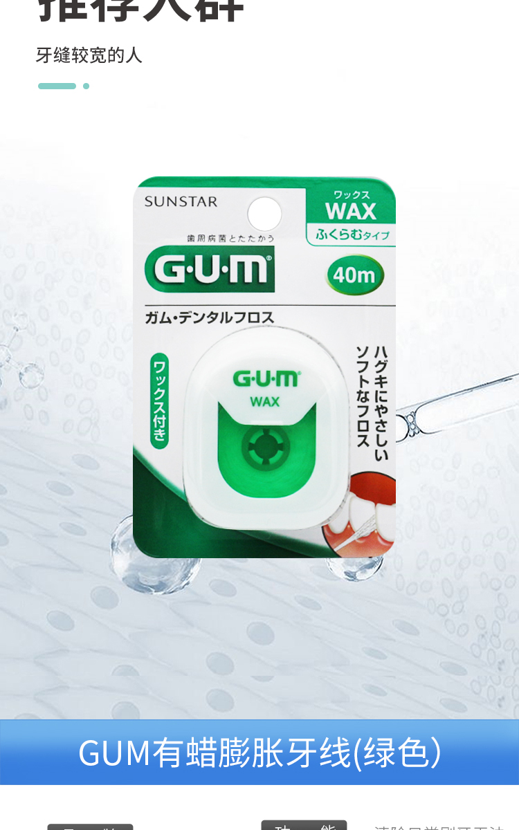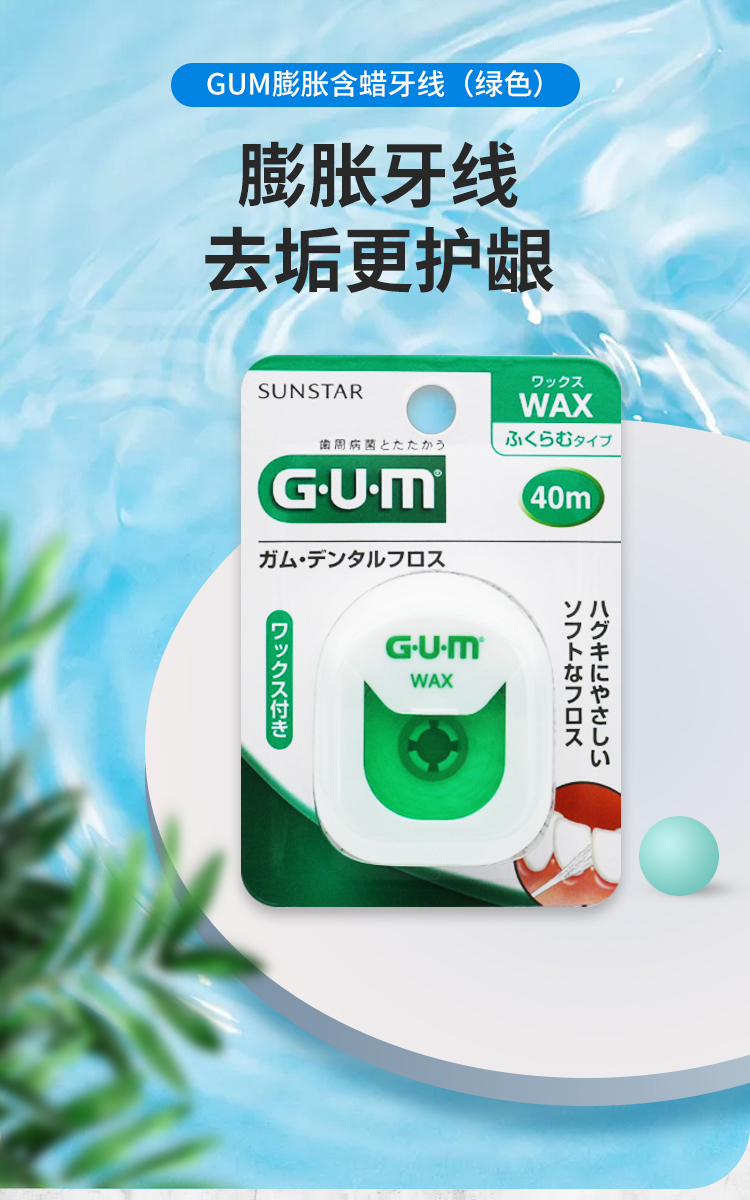 Бесплатная доставка GUM Япония оригинальная импортная расширяющаяся зубная нить с воском 40 м, оригинальная гладкая и портативная