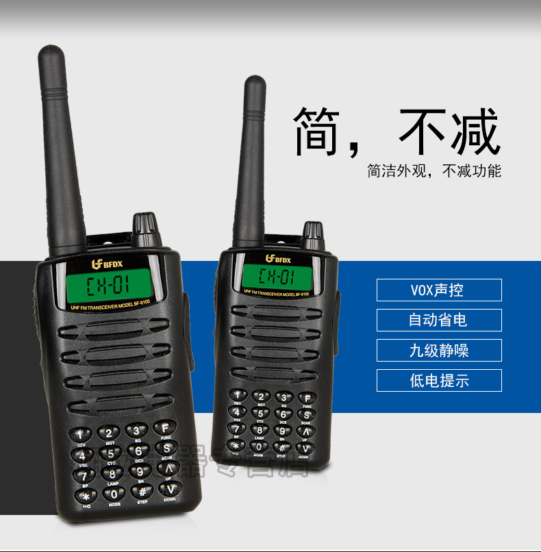 未接收到信号或无操作时,对讲机将自动进入省电模式,降低耗电量,从而延长电池的使用时间。